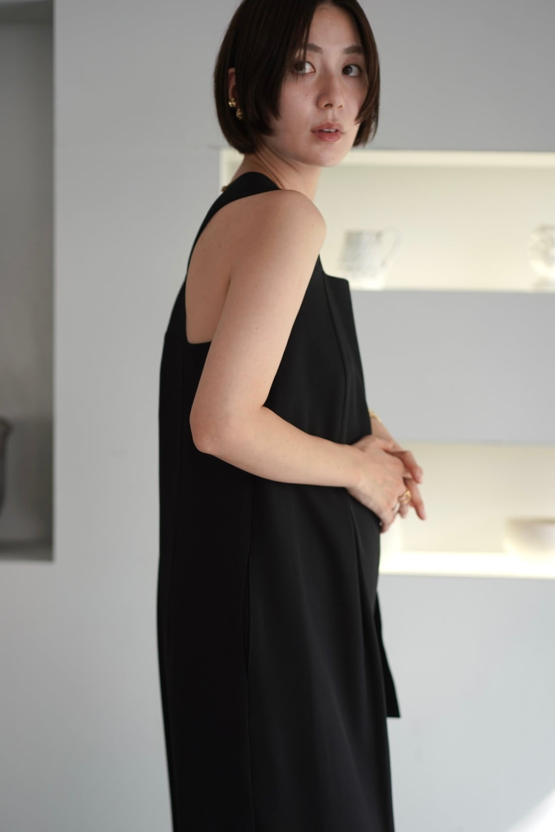 ミニマルなデザインながらフロントに垂れるタイやバックのクロスデザインがアクセントに。