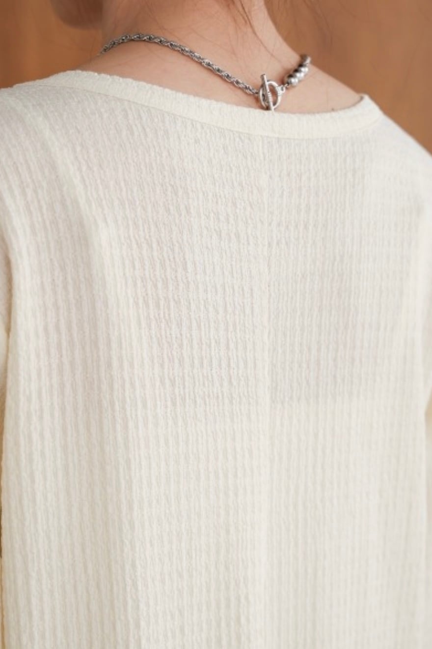 1枚でサマになりますが、合わせる小物でアレンジして着回せます。ホワイトはくすんだカラーやベージュなどの淡いカラーでまとめて、やわらかく落ち着いた淡色コーデもおすすめです。ブラックは、アクセサリーをプラスすることで華やかさとこなれ感を演出できます。一枚はもちろん、上からジャケットやデニムアウターなど合わせてもごわつかずナチュラルな着こなしが完成します◎