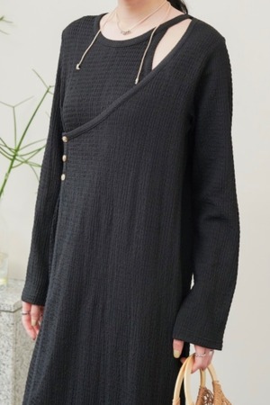 抜け感のあるネックデザインが今年らしい、一枚でサマになるワンピース!表面変化のある素材なので、上質のある印象です。体のラインを拾いすぎずスッキリ見えを叶えてくれます◎ペチコート付きなのでそのまま着やすいです。