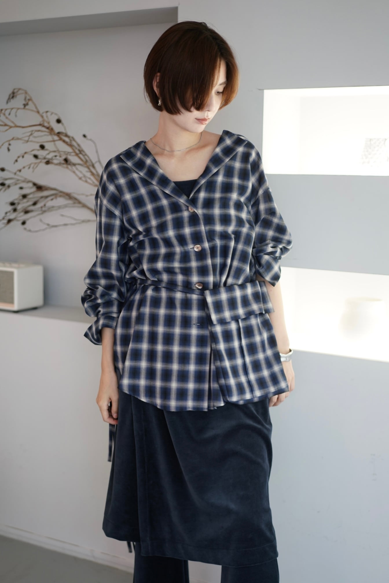 CREDONA SHEER CHECK SHIRT JACKET シアーチェックシャツジャケット Blue