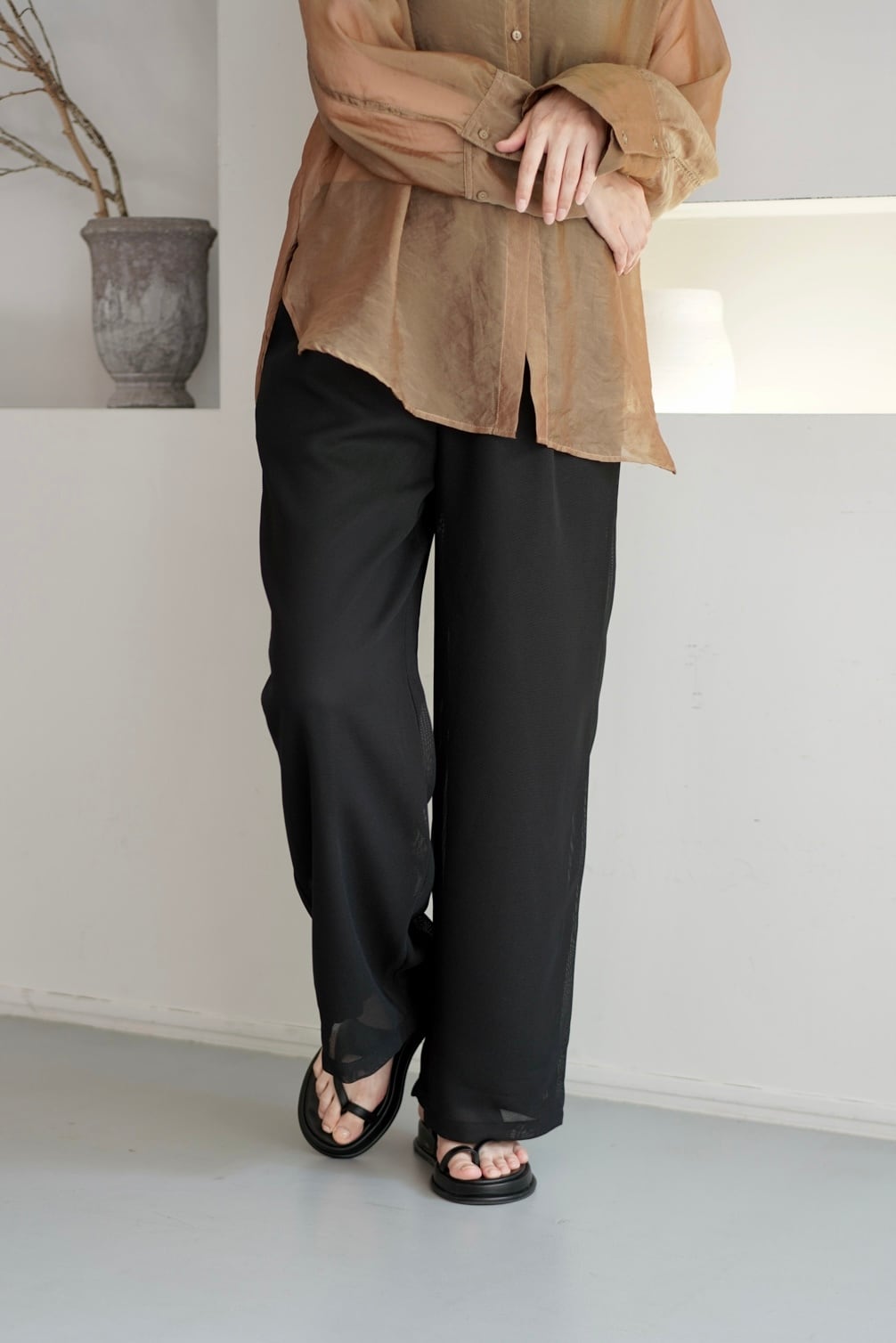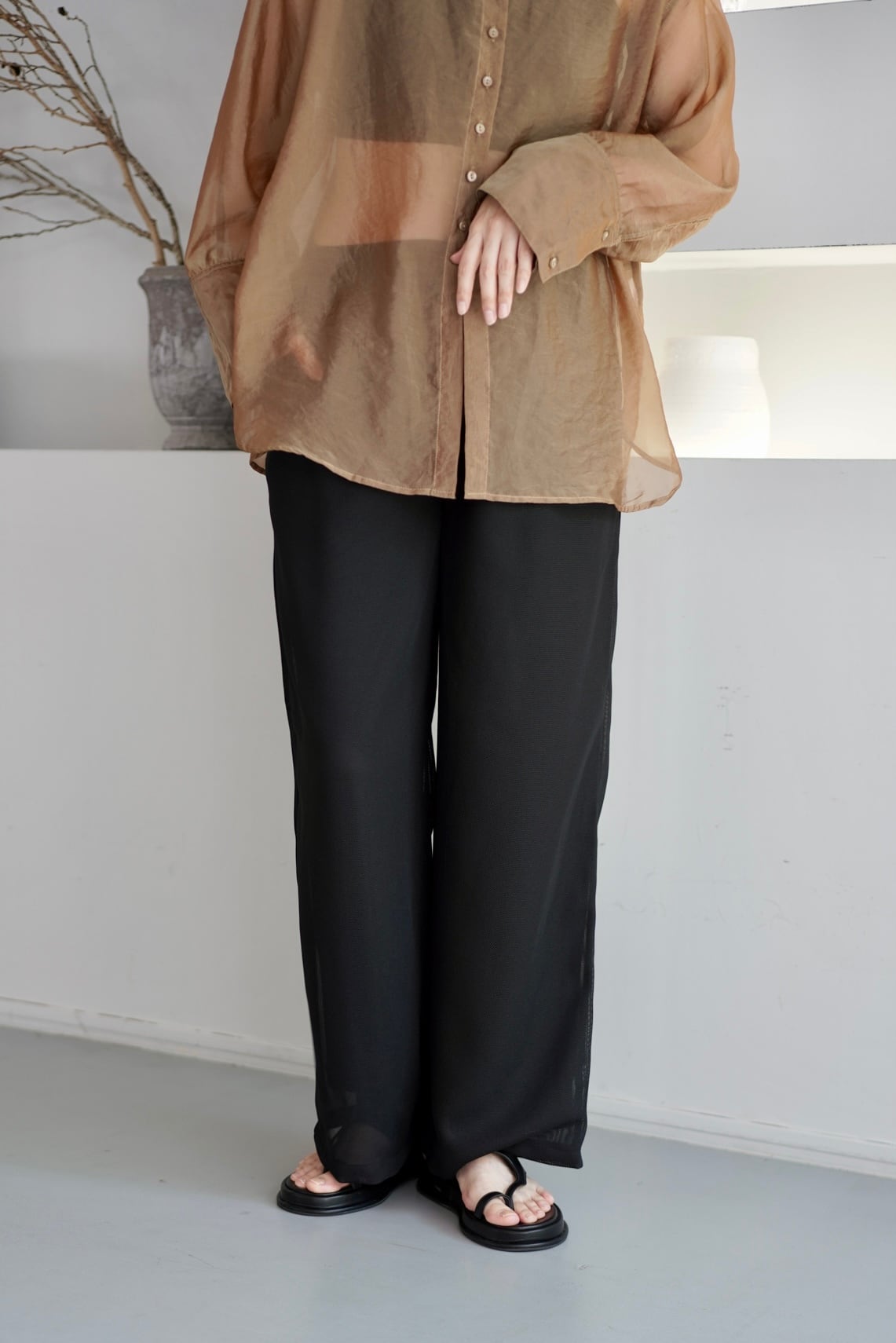 夏らしいメッシュ素材で軽やかさが魅力的なタックパンツ。