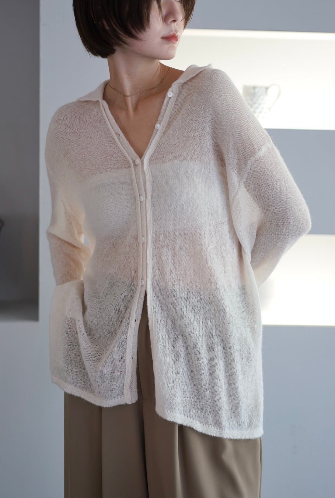 sheer alpaca Knit shirt シアーアルパカニットシャツ Ivory