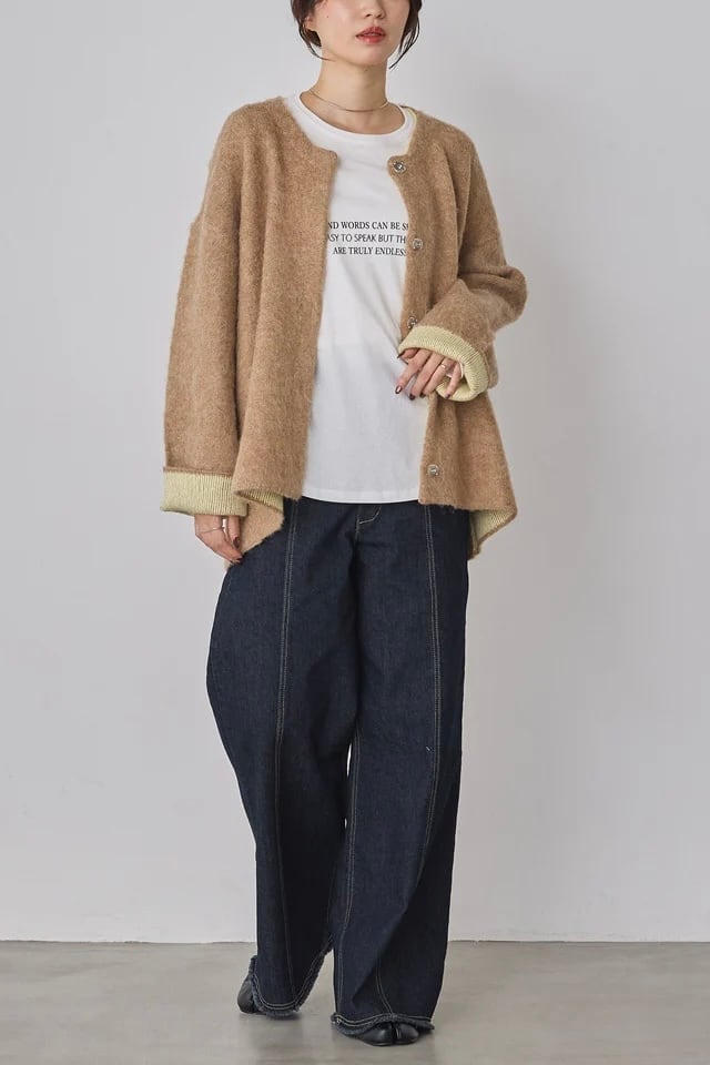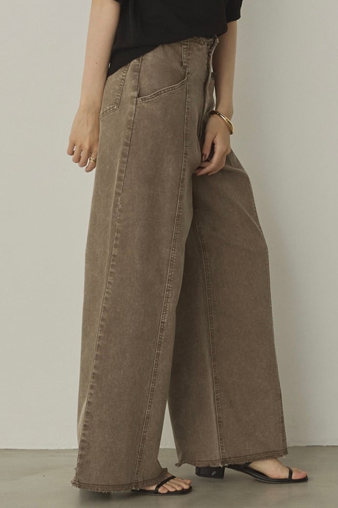 スッキリとしたワイドパンツなので、どんなトップスとも好相性です。