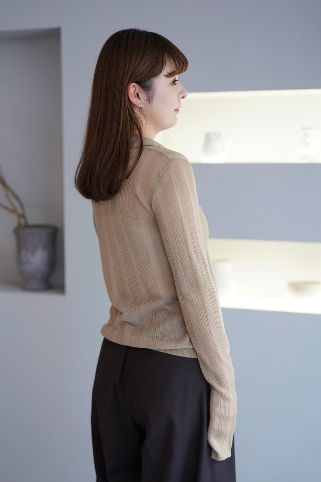 random ribs sheer polo knit ランダムリブシアーポロニット Beige