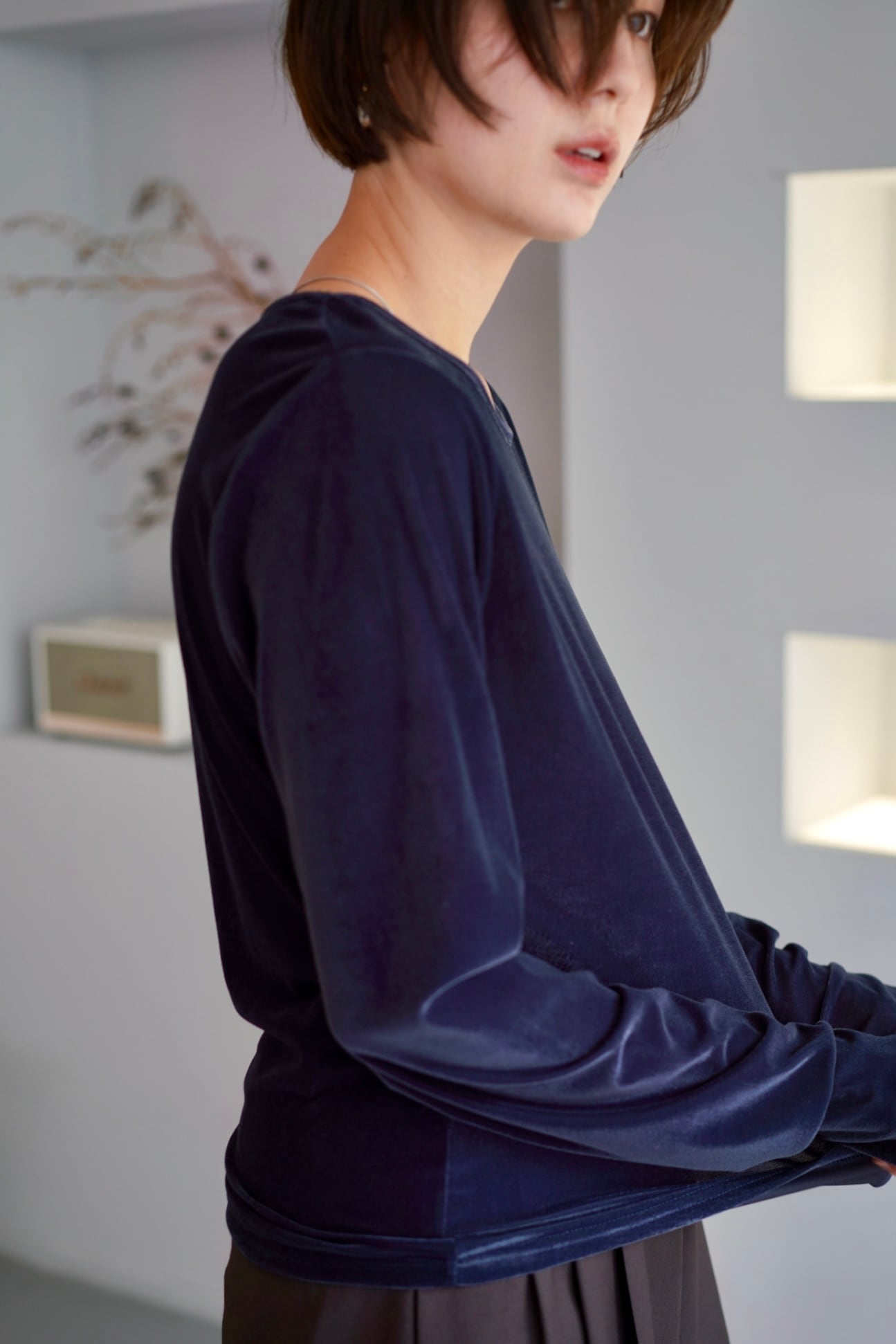 Sheer velours crew neck cut sew シアーベロアクルーネックカットソー Navy