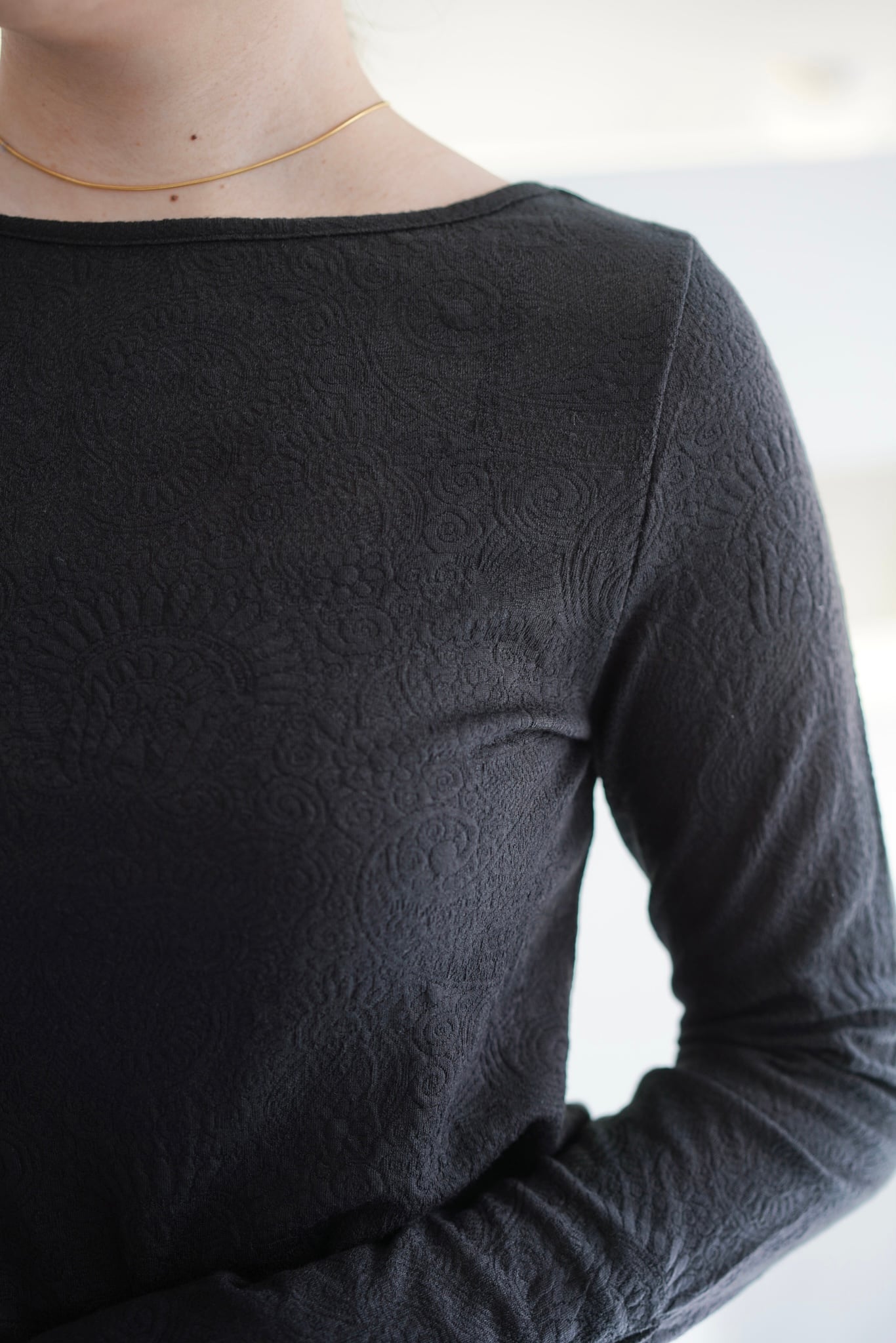 Lace jacquard tops レースジャガードトップス Black