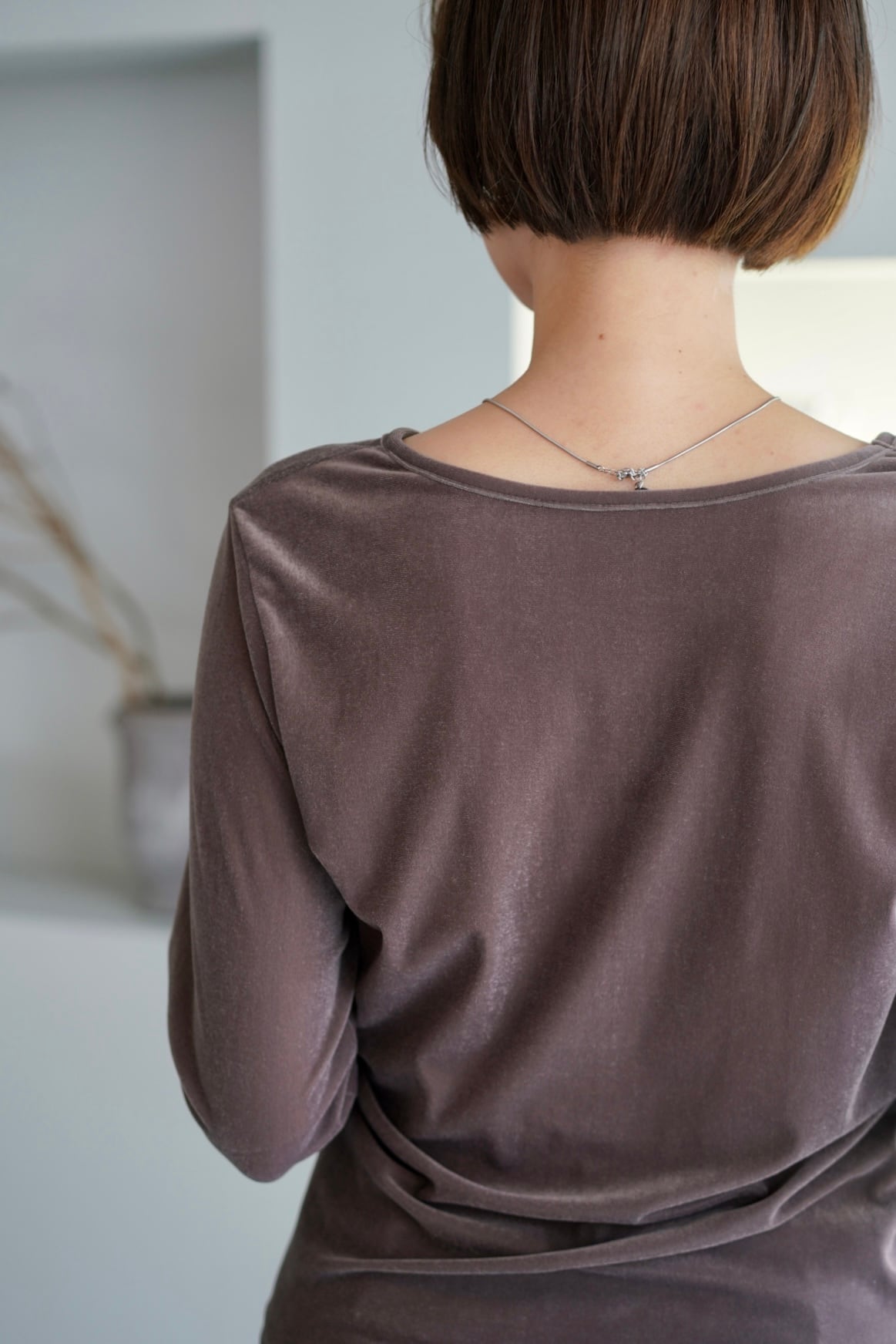Sheer velours crew neck cut sew シアーベロアクルーネックカットソー Moca
