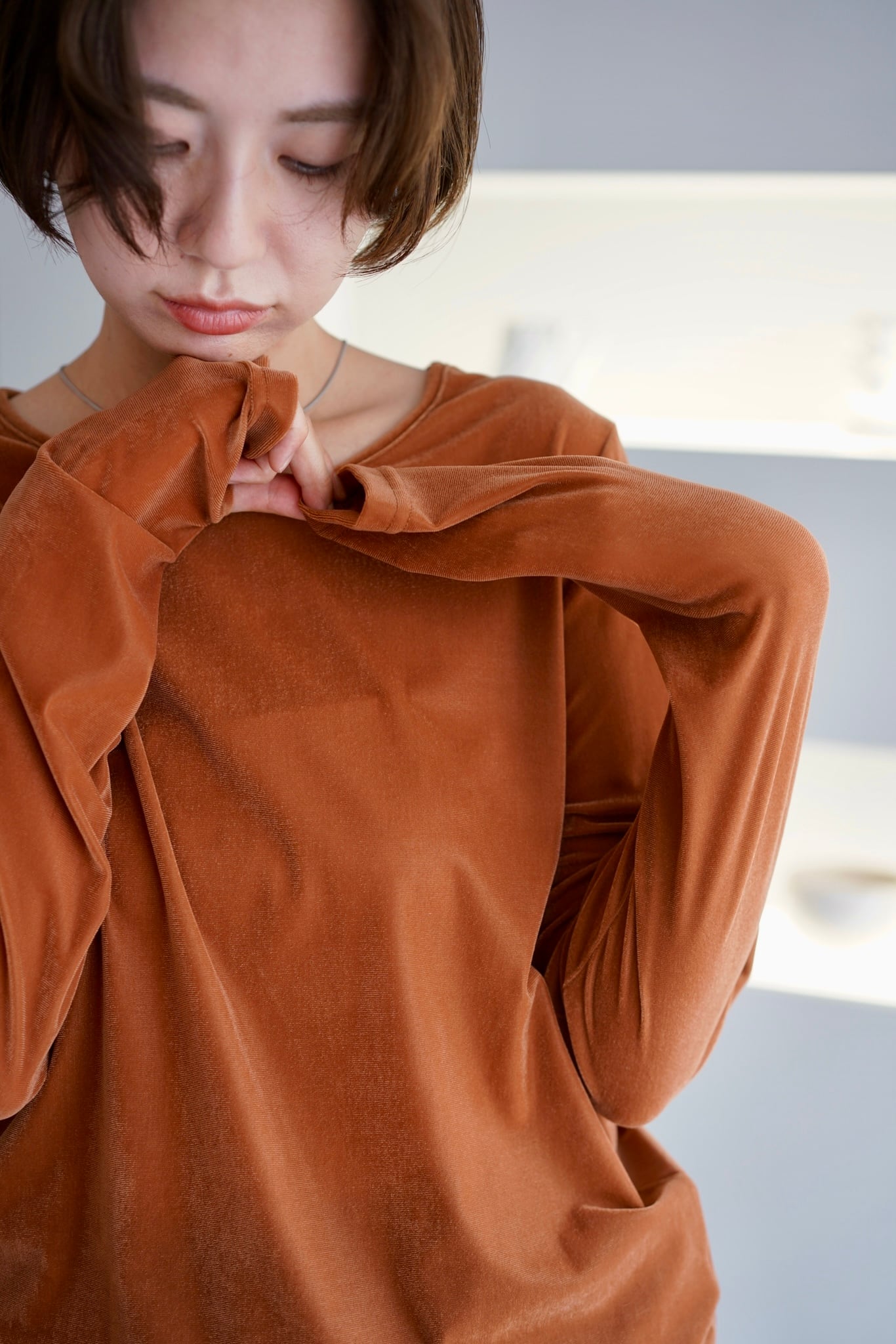 Sheer velours crew neck cut sew シアーベロアクルーネックカットソー Dark orange