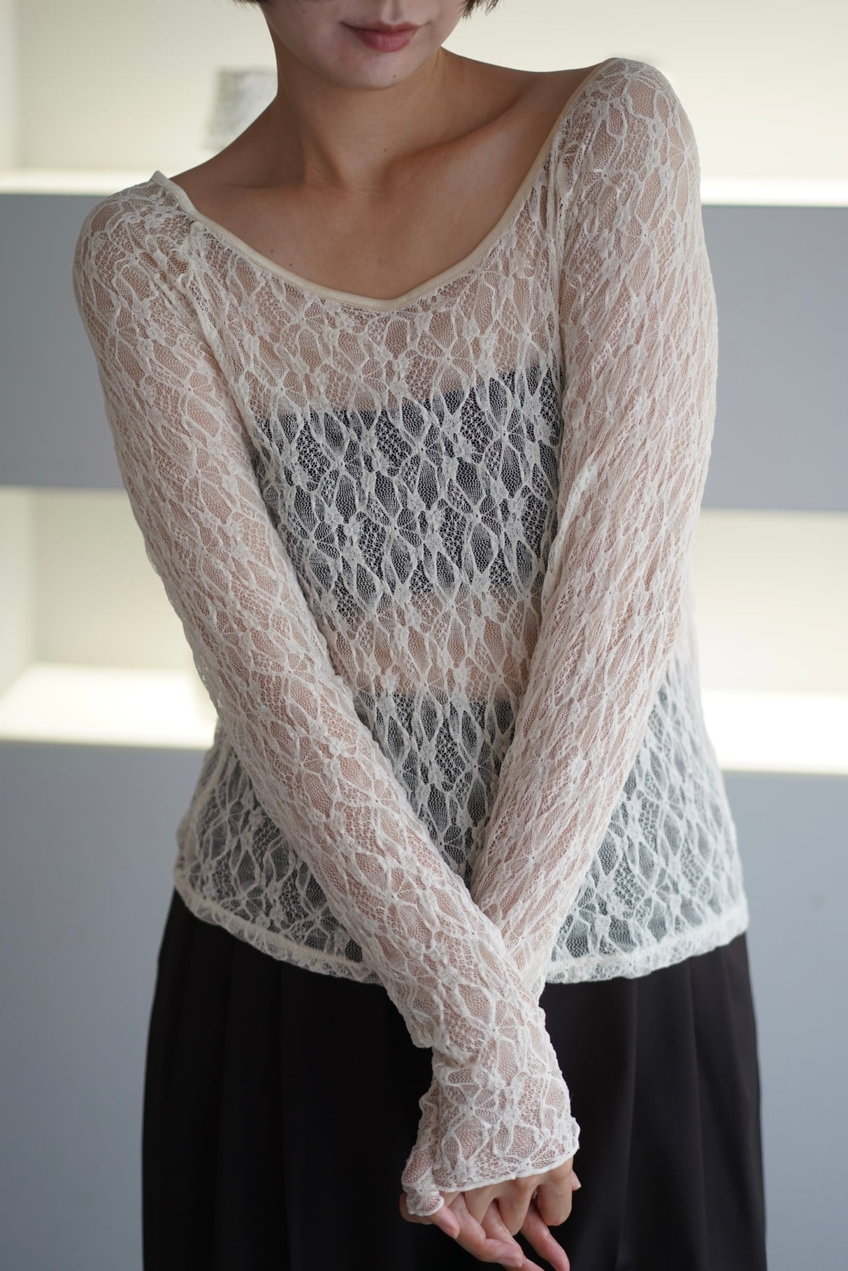 ・繊細なフラワーレースが上品に透ける、シアー素材のフェミニントップス