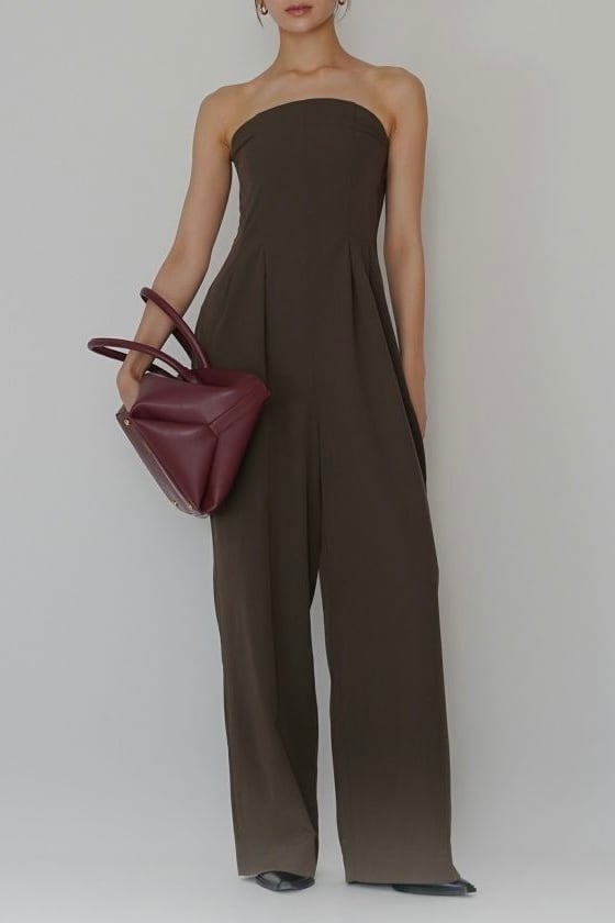 ジャストサイズなバスト、ヒップまわりはゆとりがあるシルエットのベアオールインワン。