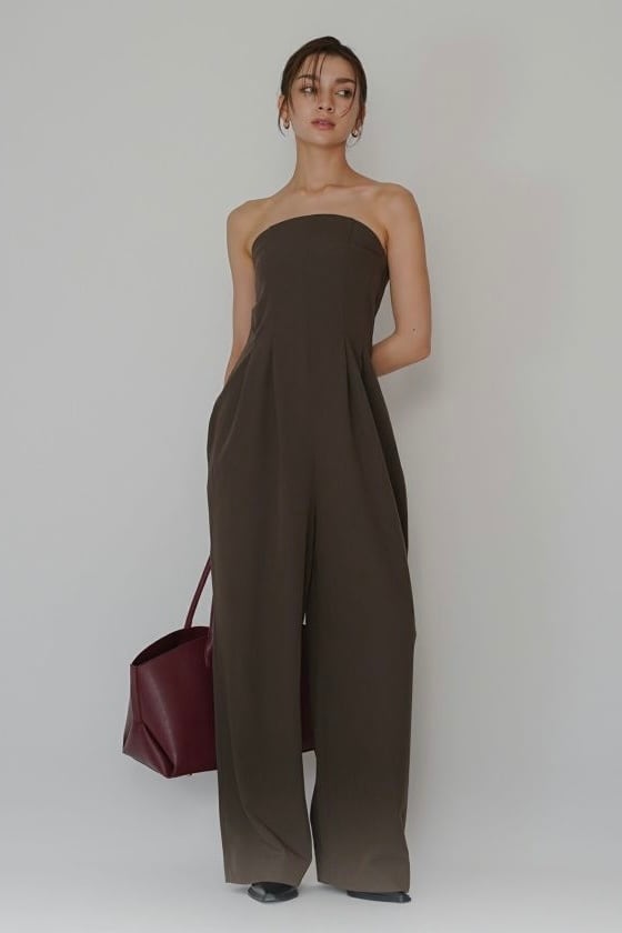 ジャストサイズなバスト、ヒップまわりはゆとりがあるシルエットのベアオールインワン。