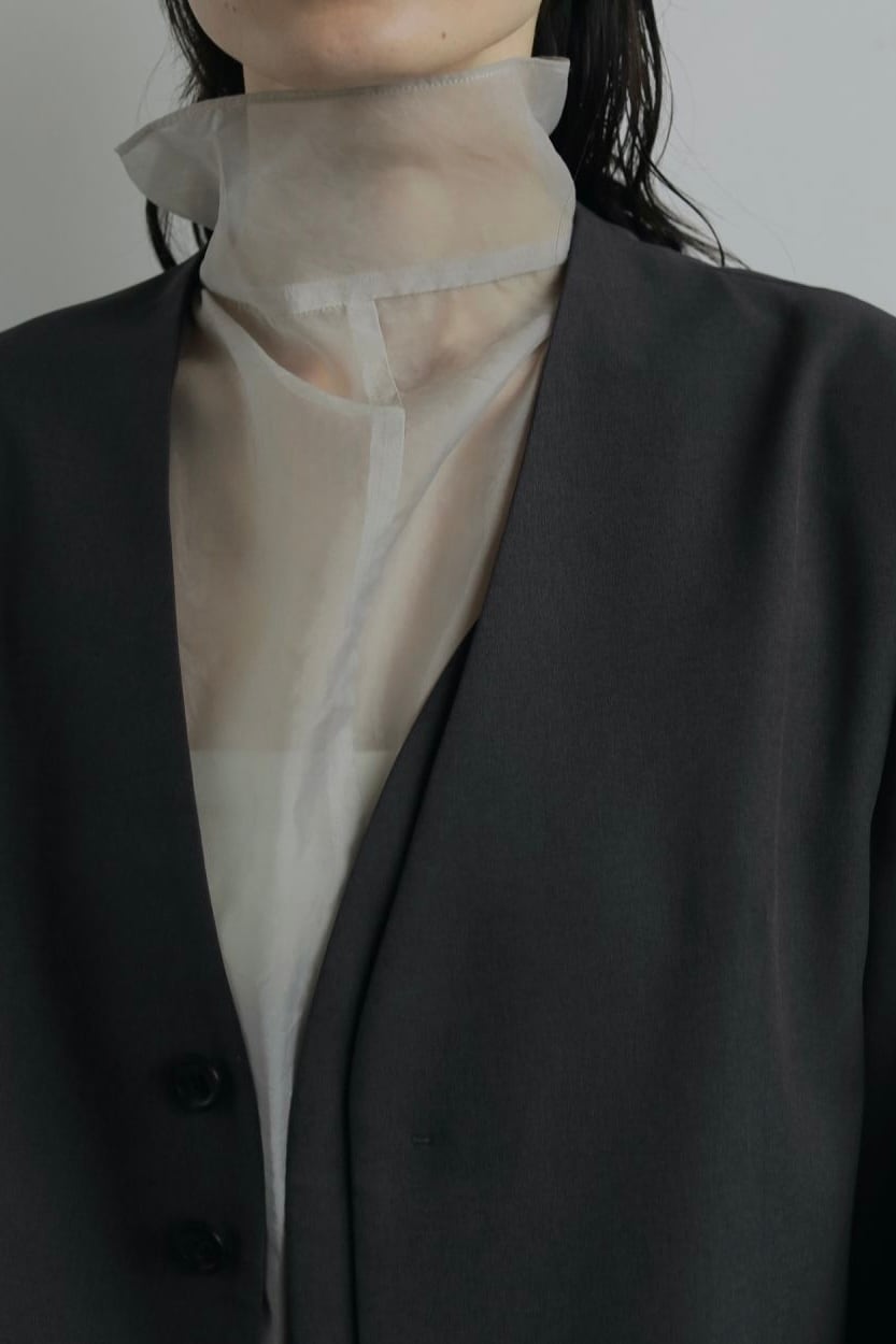 上品な透け感ある素材とタートルデザインで、大人っぽく着ていただけるロングワンピース。ジャケットのインナーとして合わせたり、ニットと合わせたり、重たくなりがちな秋冬のスタイリングに抜け感をプラスしてくれます。パンツとのレイヤードがおすすめ。パンツと重ねた際にもバランスの取りやすい長過ぎない丈です。