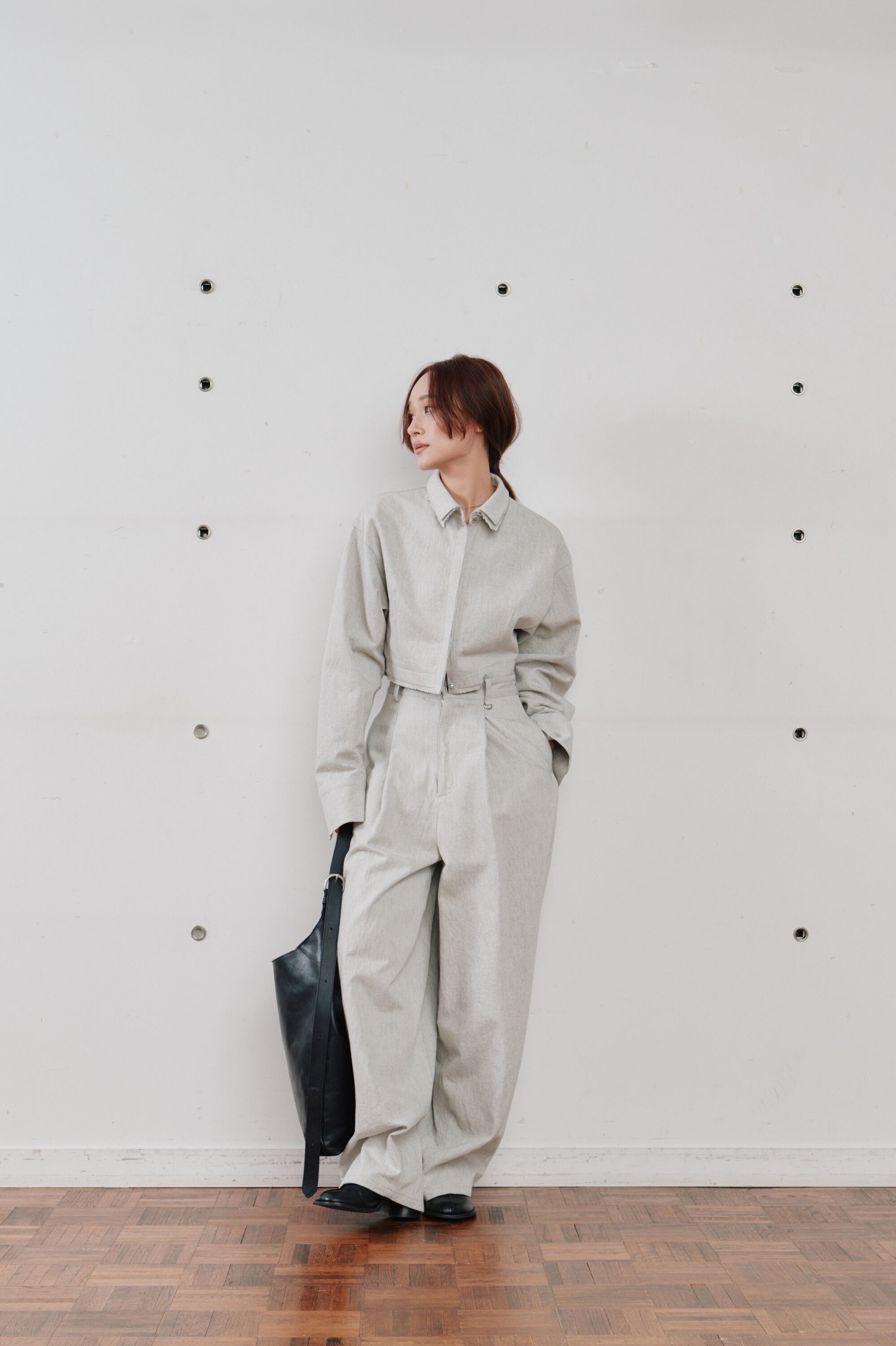 長めの袖とややゆとりのある身幅で、抜け感のあるバランスに仕立てました。