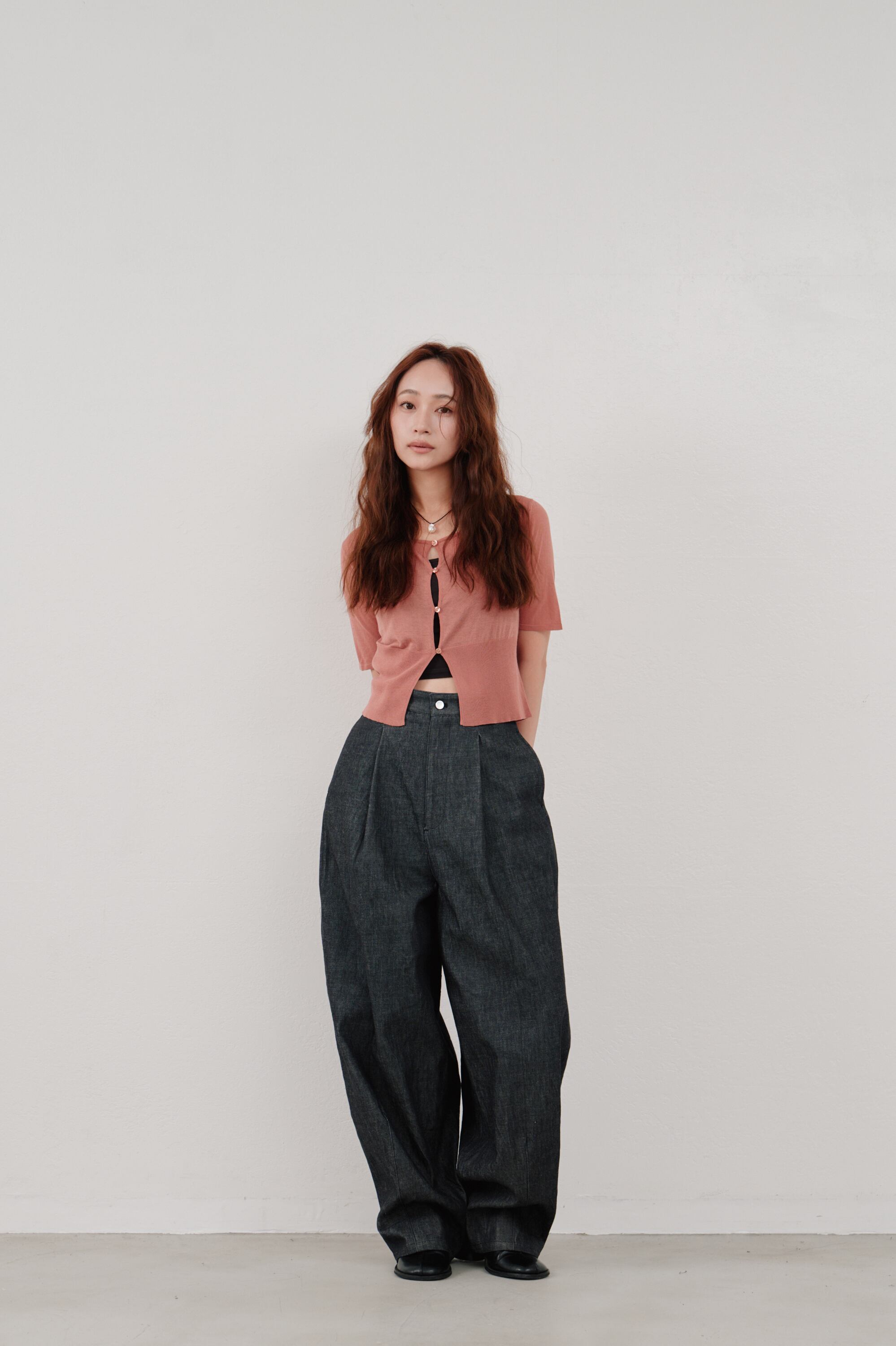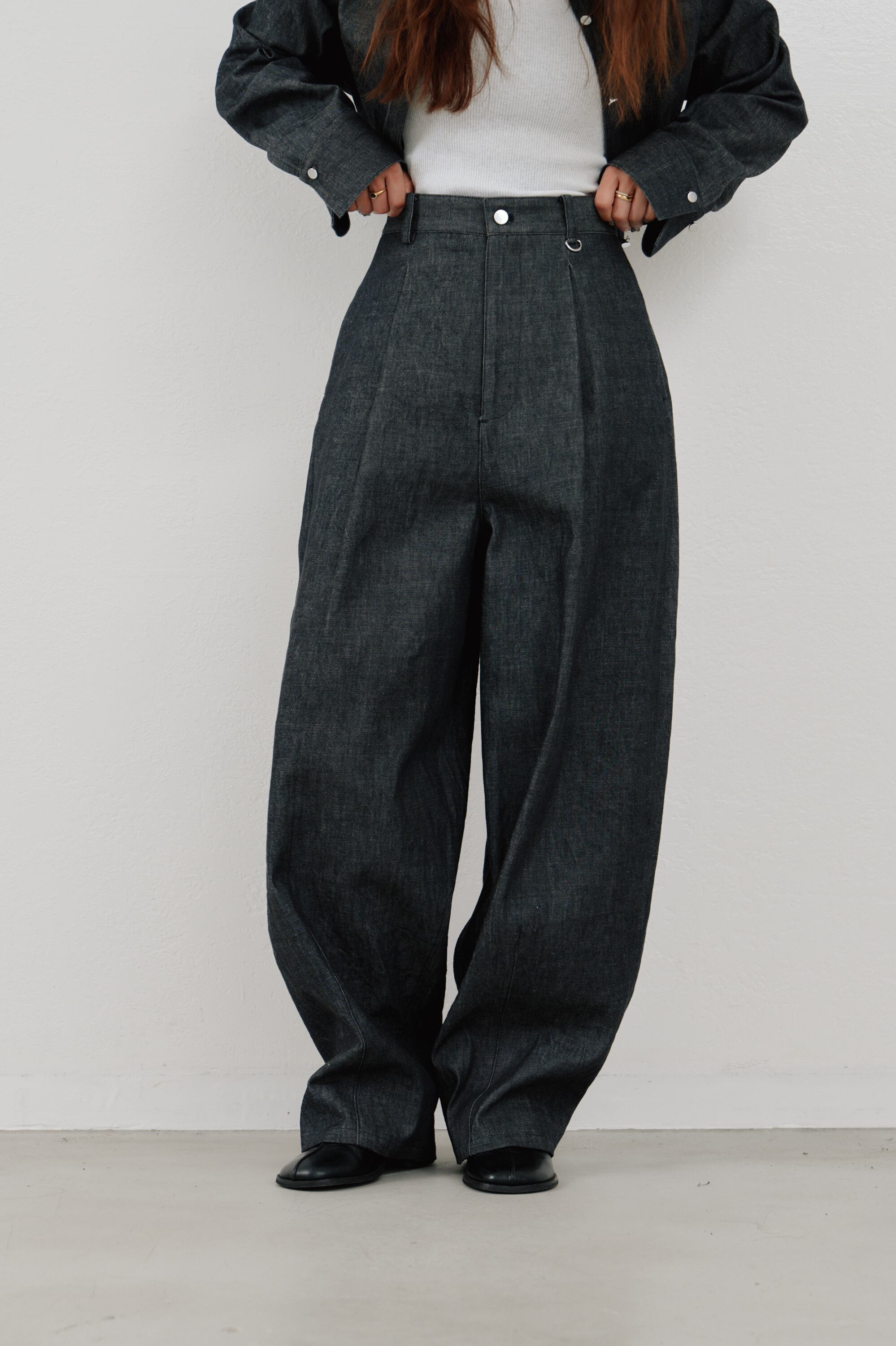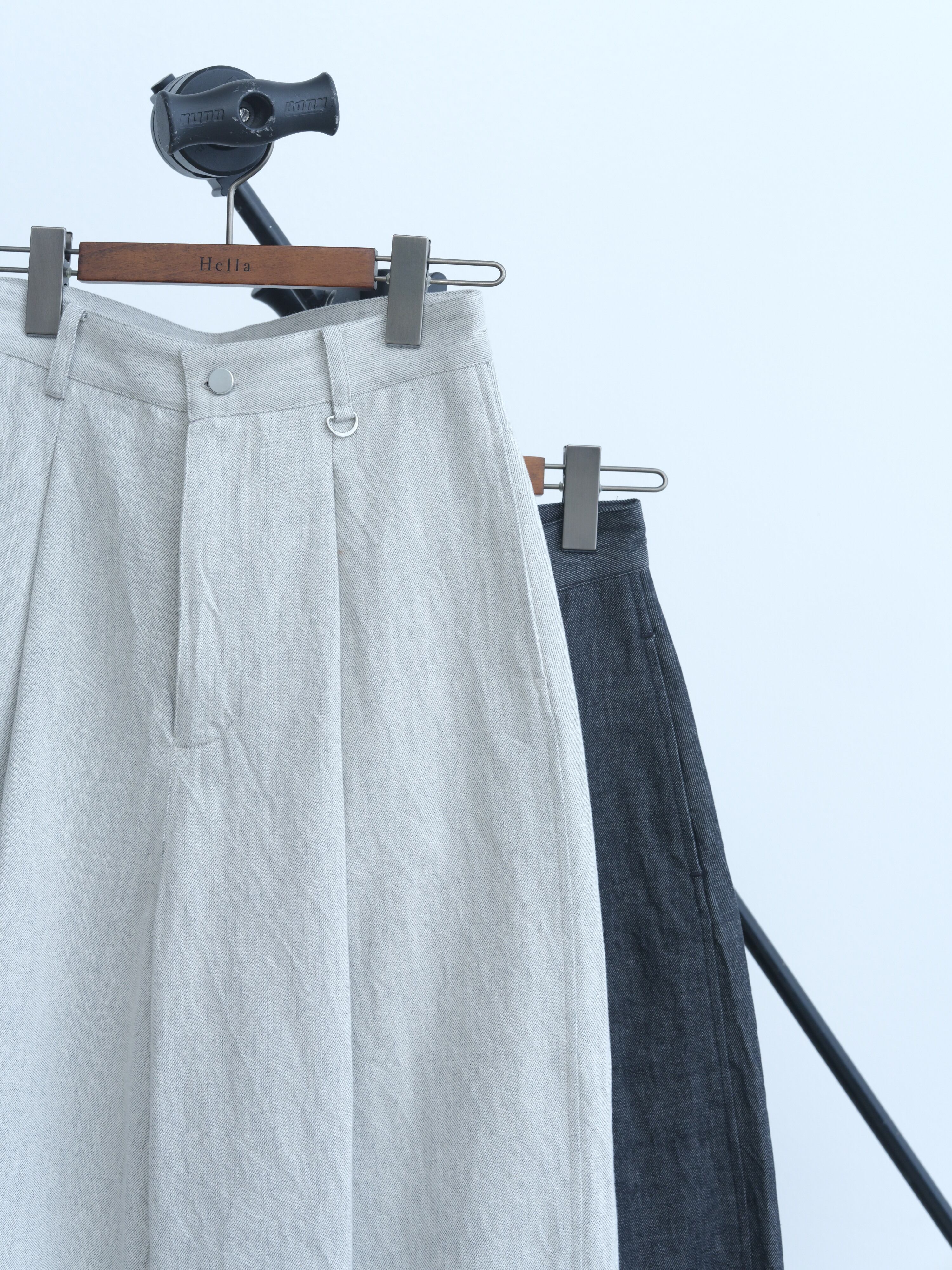 フロントのタックが腰回りにゆとりを持たせ、リラックス感のある佇まいに。