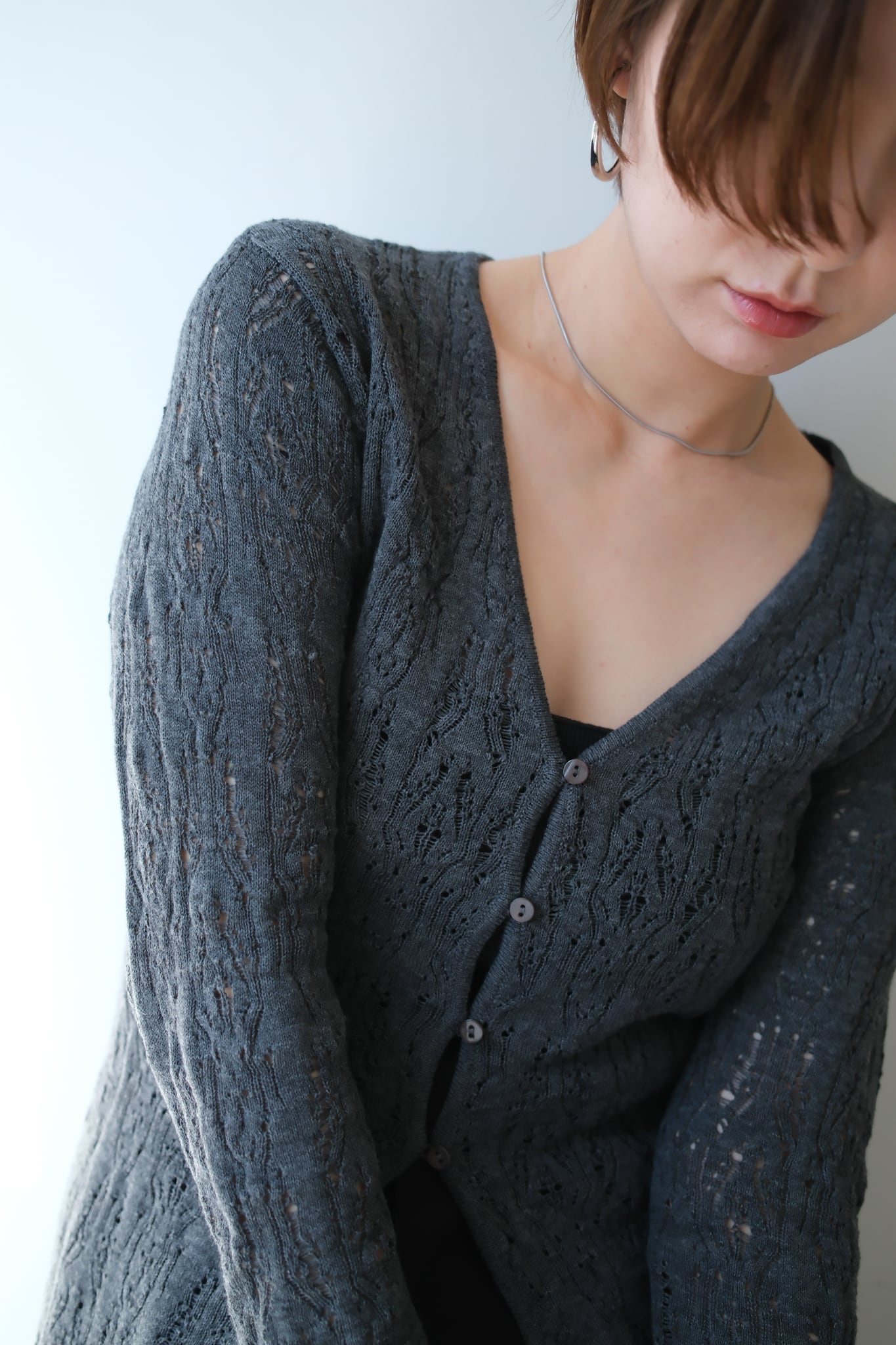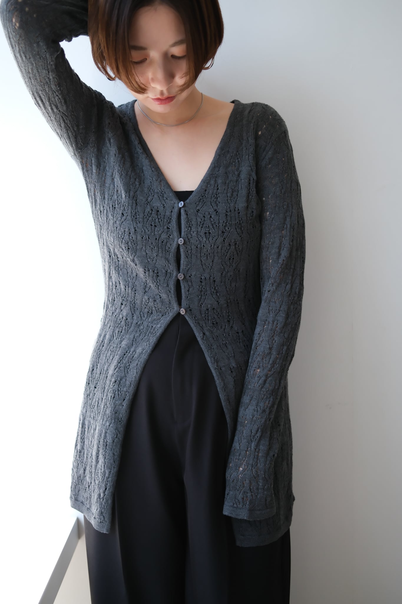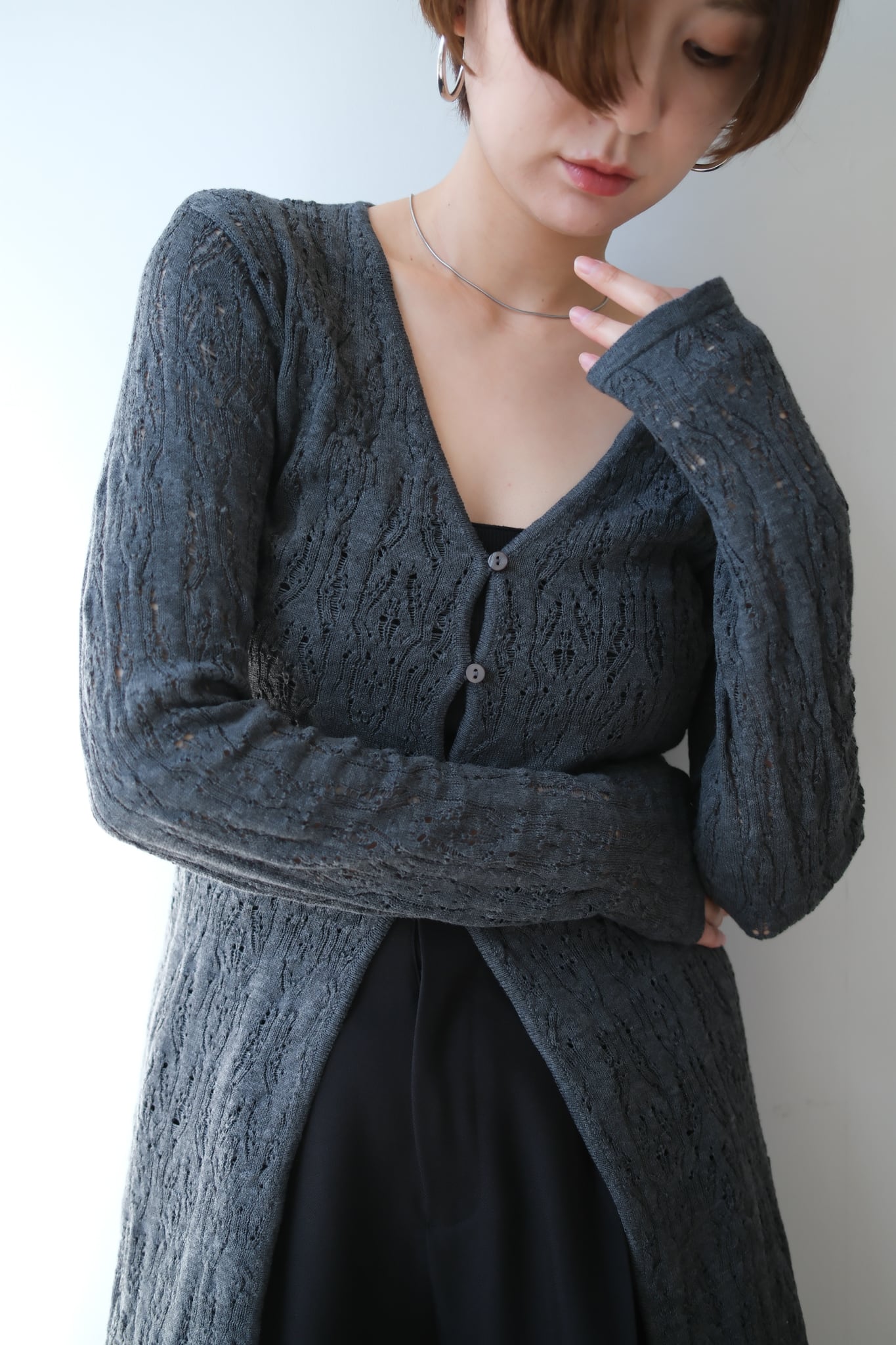 表情豊かな透かし編みが印象的な、ロングカーディガン。