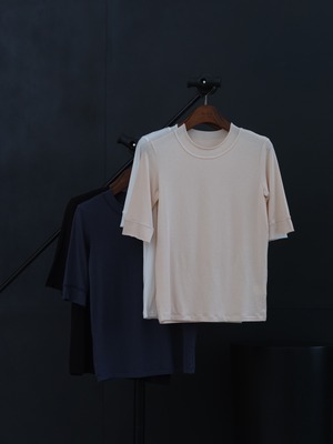 コンパクトなシルエットで仕上げた、五分袖のベーシックカットソー。
