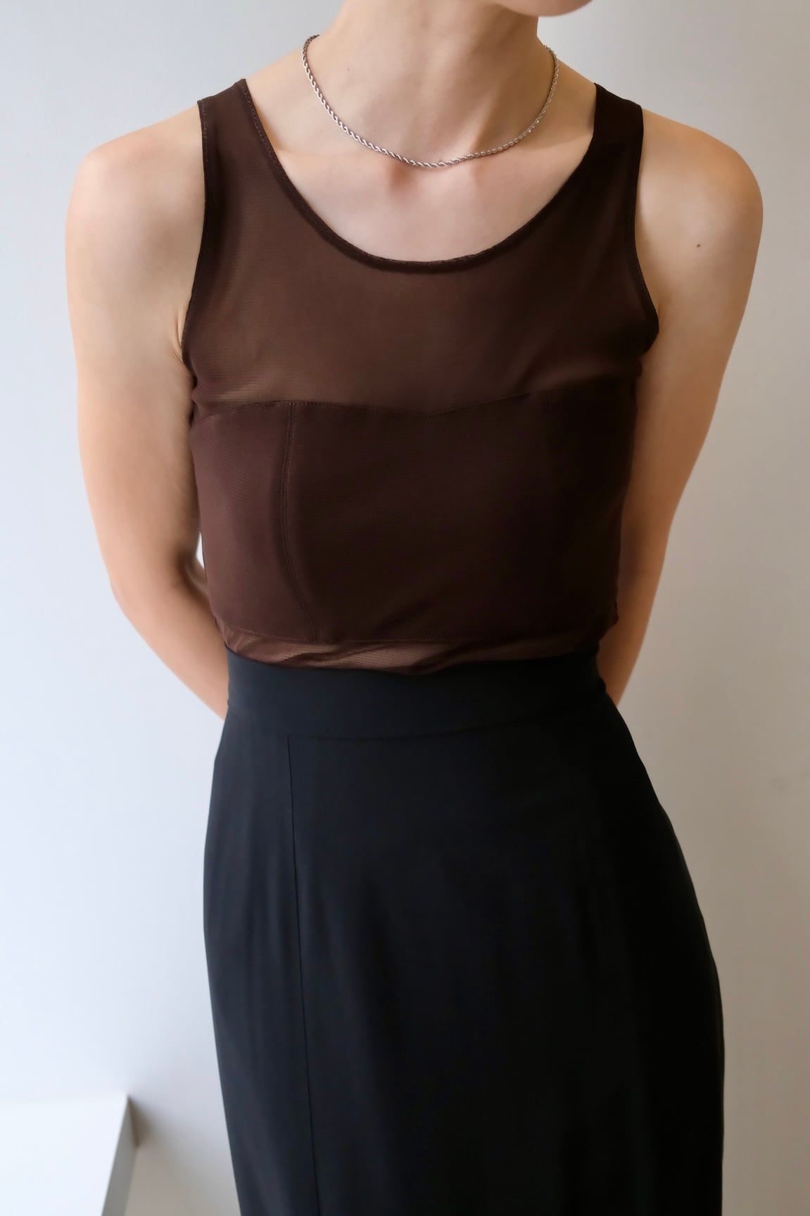 louren sheer fitted tank シアーフィットタンク Brown
