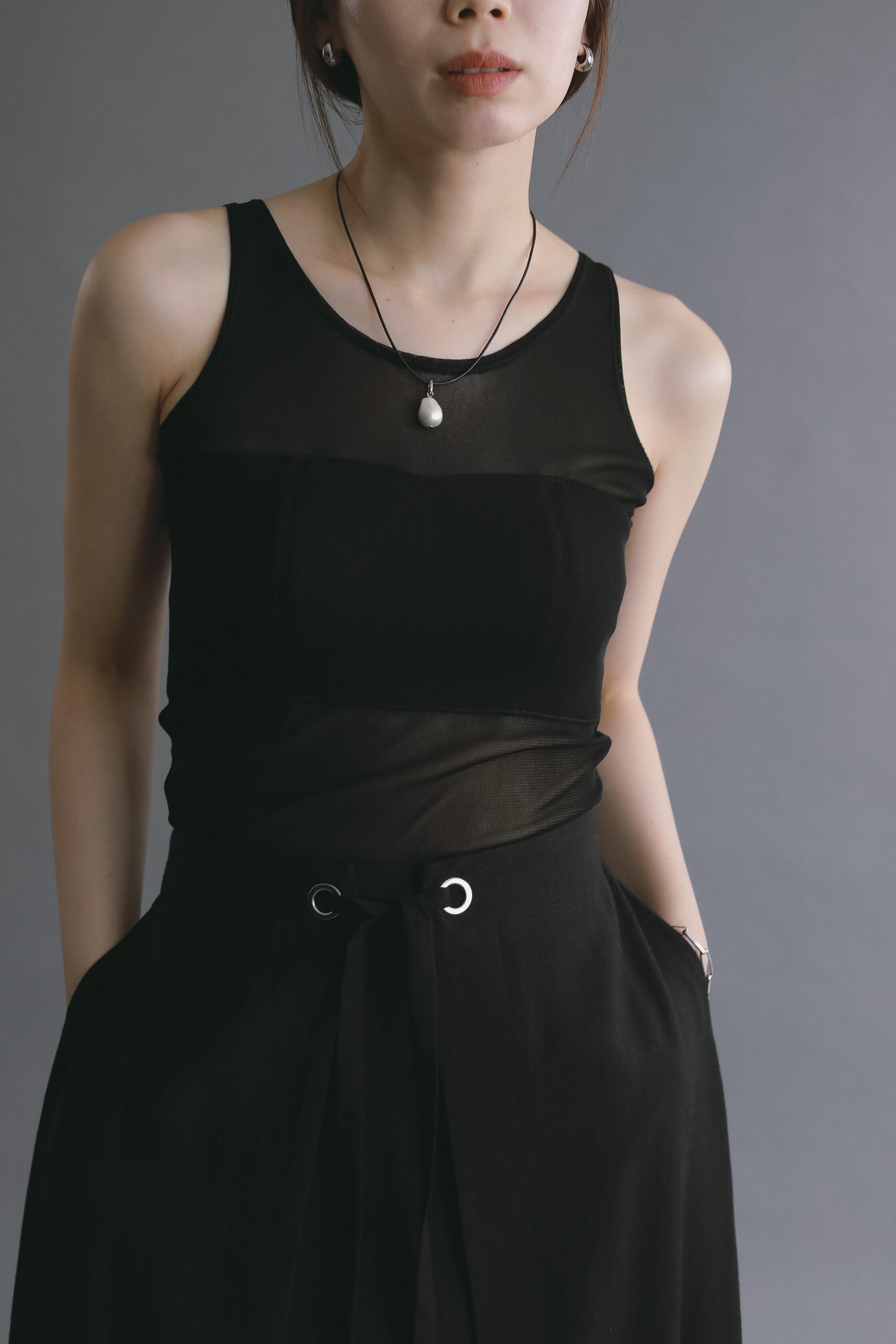 軽やかなメッシュ素材で仕立てたタンクトップ。
