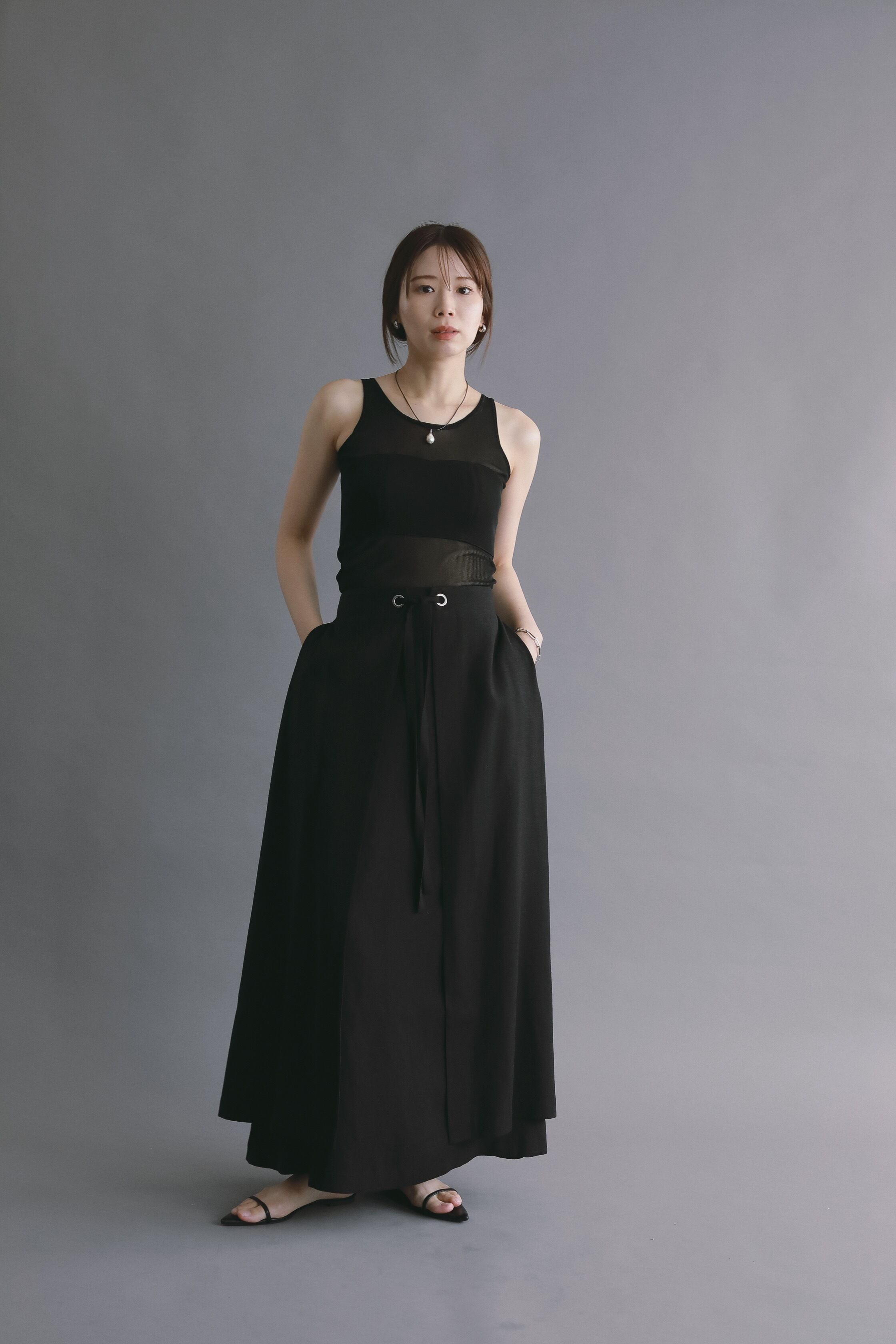 胸元は透け感のない別素材を重ね、安心感のある着心地に仕上げています。
