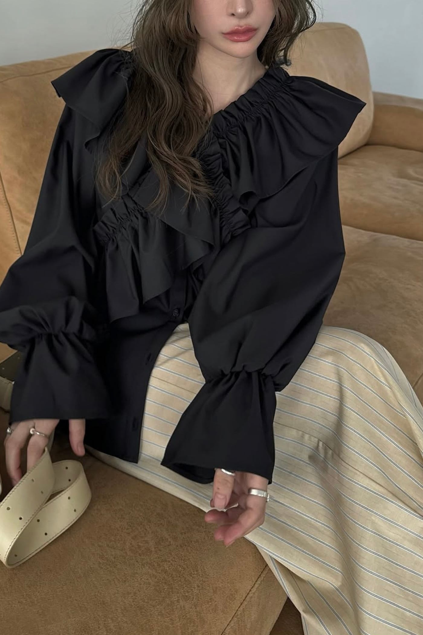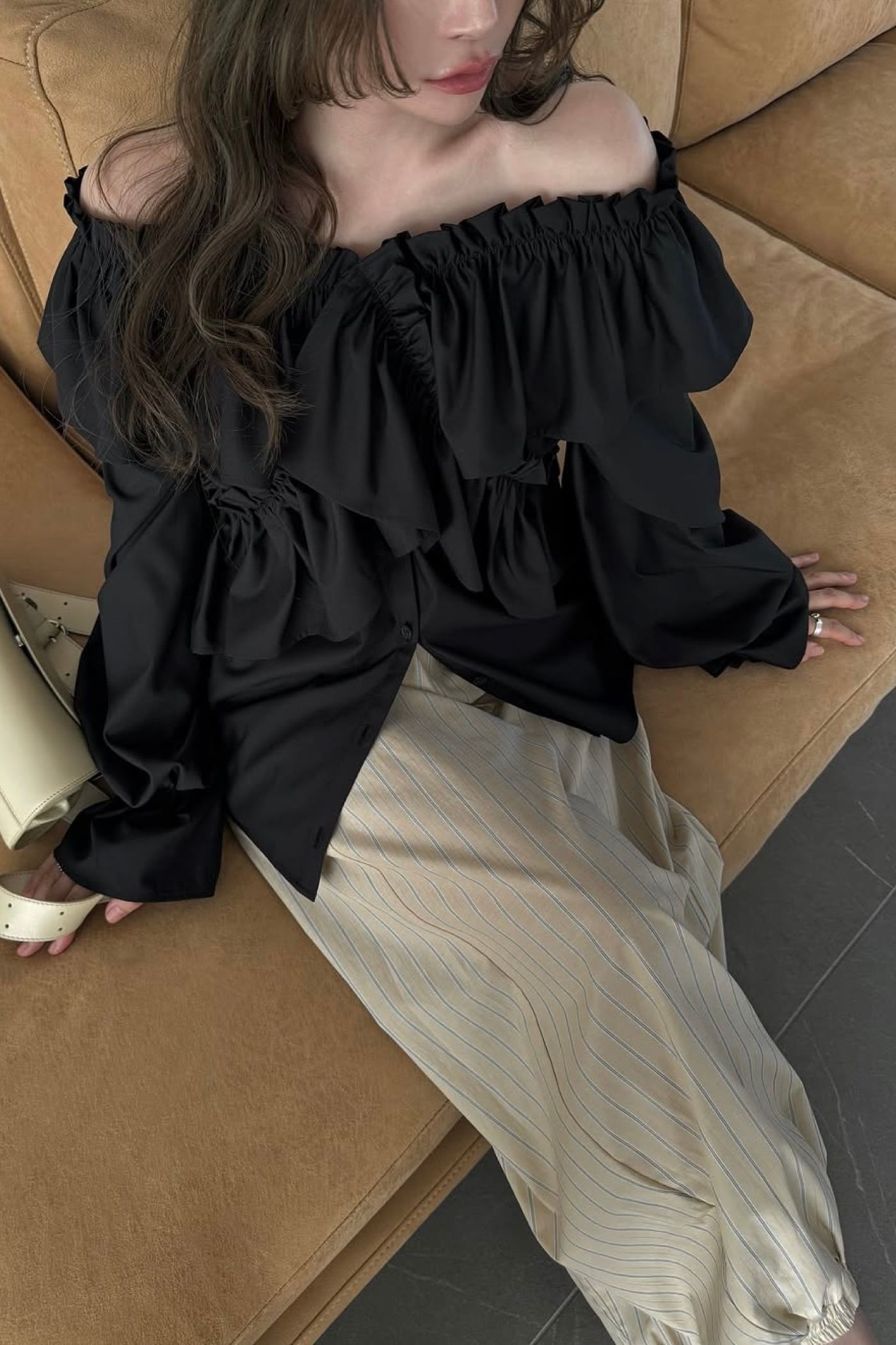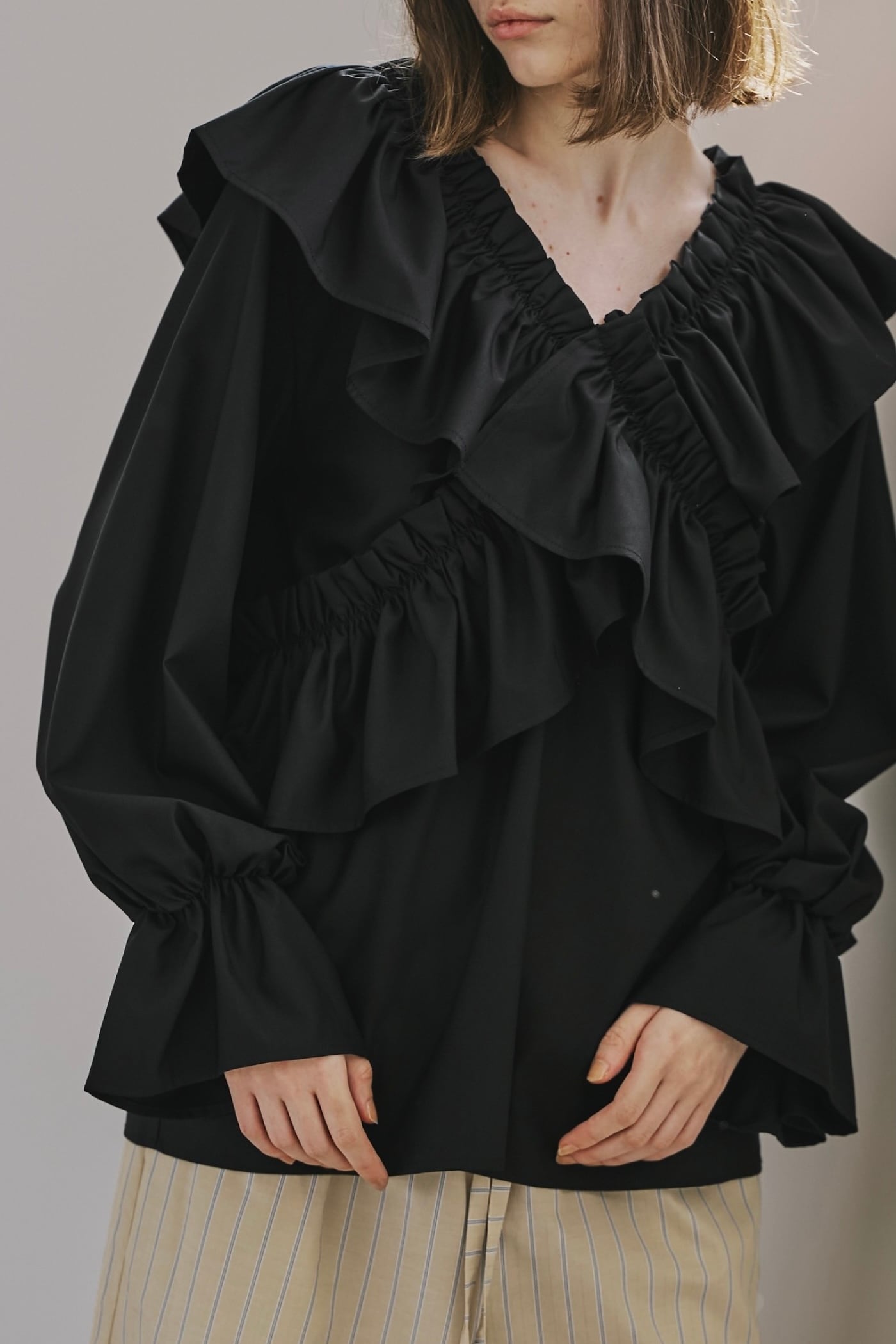 WILLFULLY frill cross asymmetry BL フリルクロスアシメブラウス Black