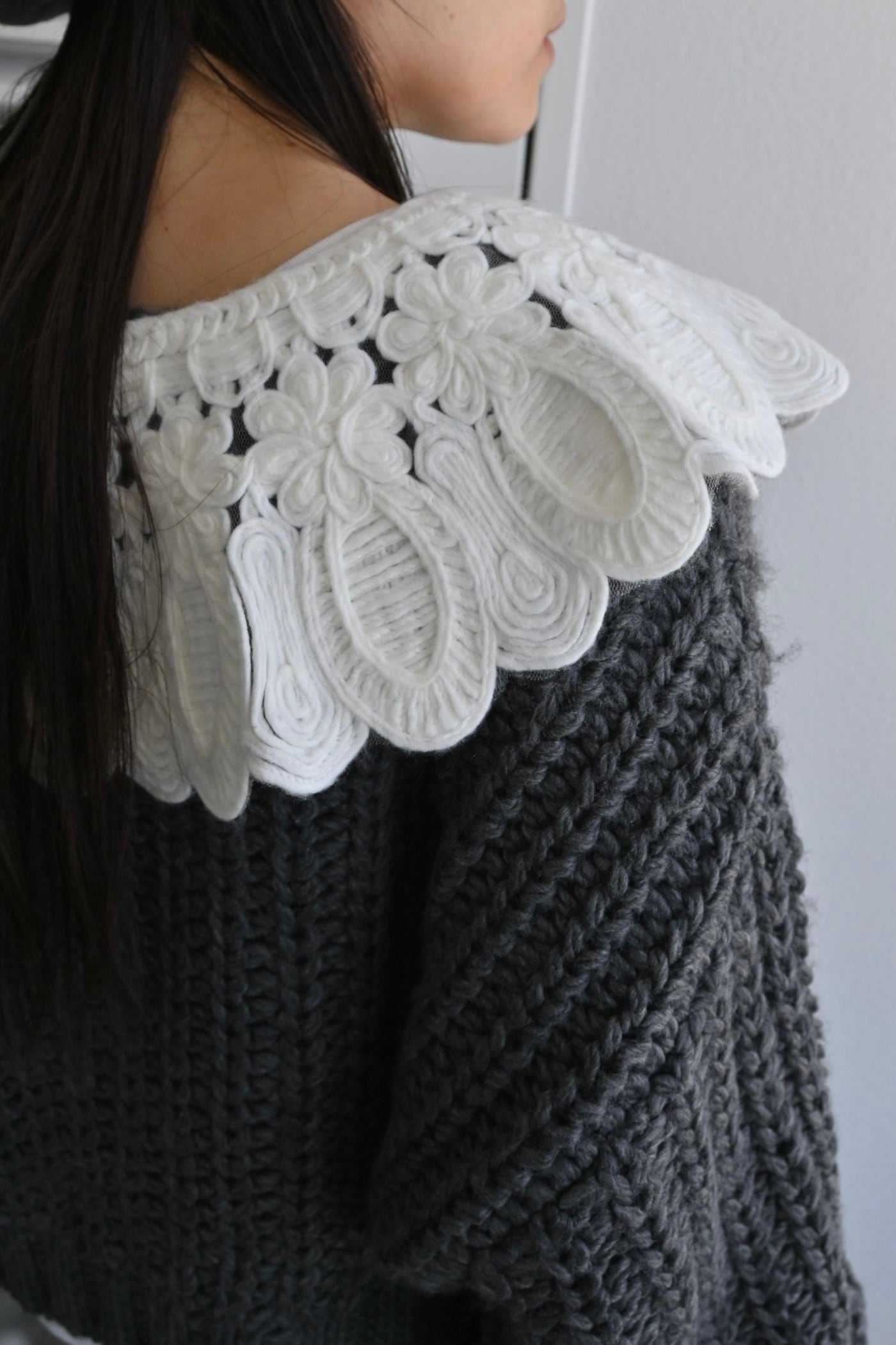 WILLFULLY motif collar removal knit cardigan モチーフカラーリムーバルニットカーディガン Charcoal