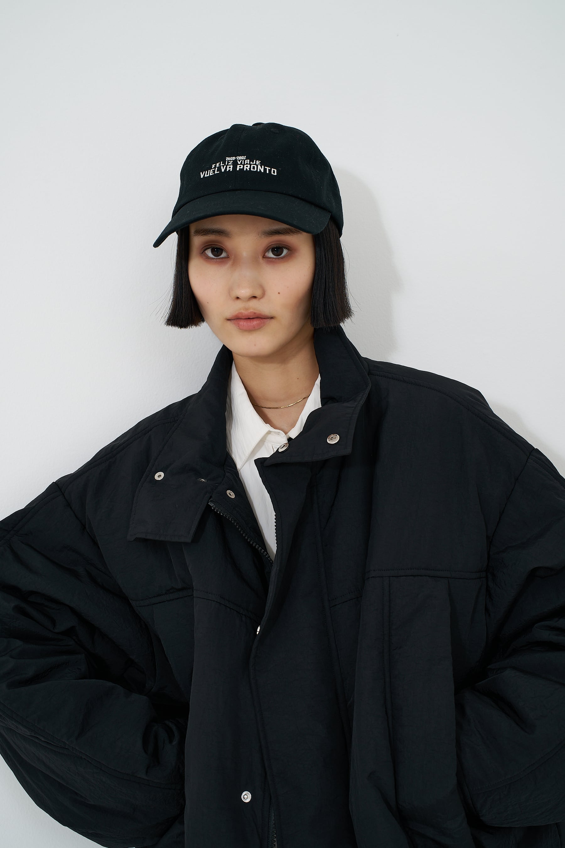 オーバーサイズのシルエットはそのままに、切り替えのバランスや衿まわりのデザインにこだわり、コンパクトながら存在感のある一枚に仕上げました。