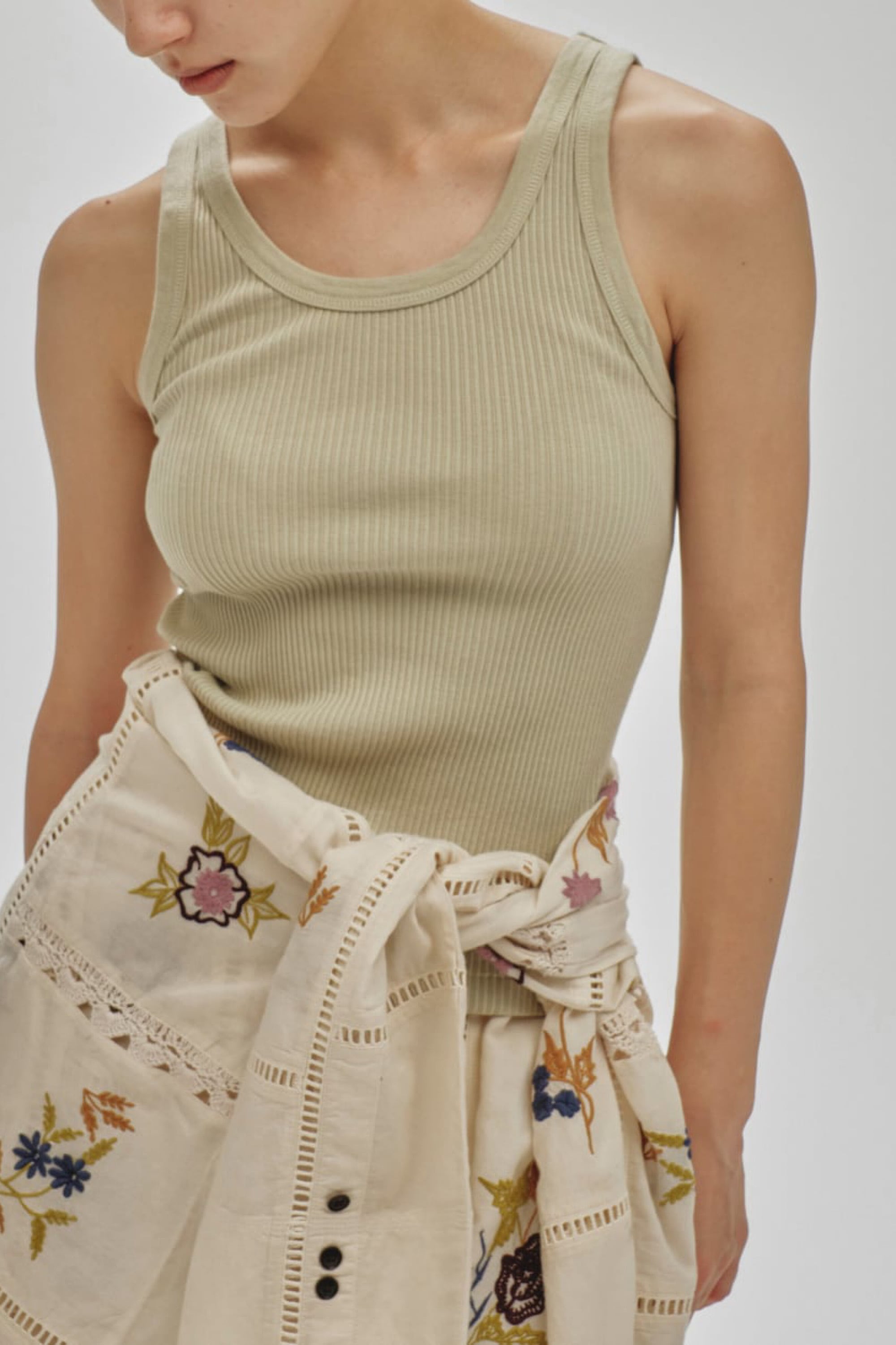 国内の生地を使用したリブタンクトップ。