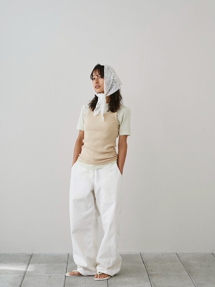 国内の生地を使用したリブタンクトップ。
