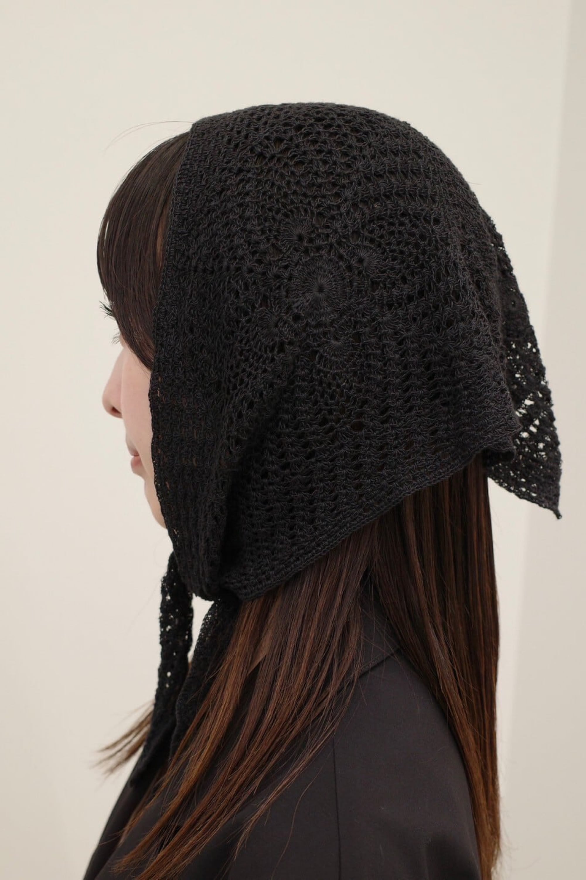 頭に巻くのはもちろん、コートやジャケットの上から肩にかけたり、いつものスタイリングにプラスするだけで自然と溶け込みつつ、程良いアクセントに。