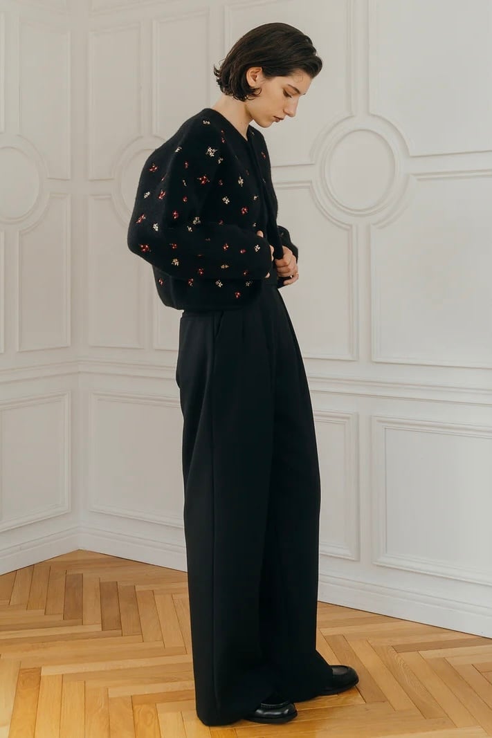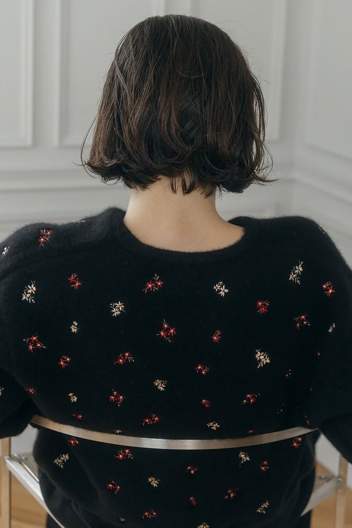 ふんわりとした風合いにアーティスティックな小花の刺繍を散りばめ、羽織るだけで華やぎを添える一枚。