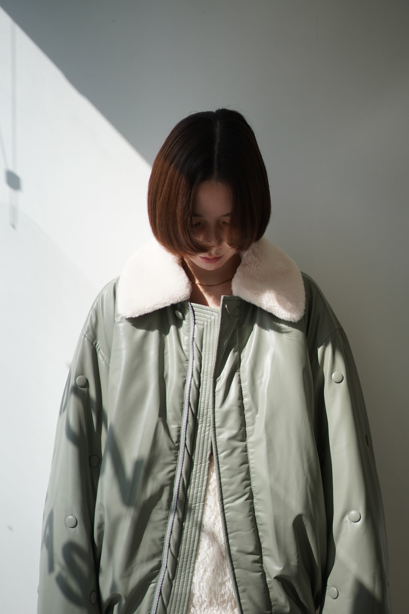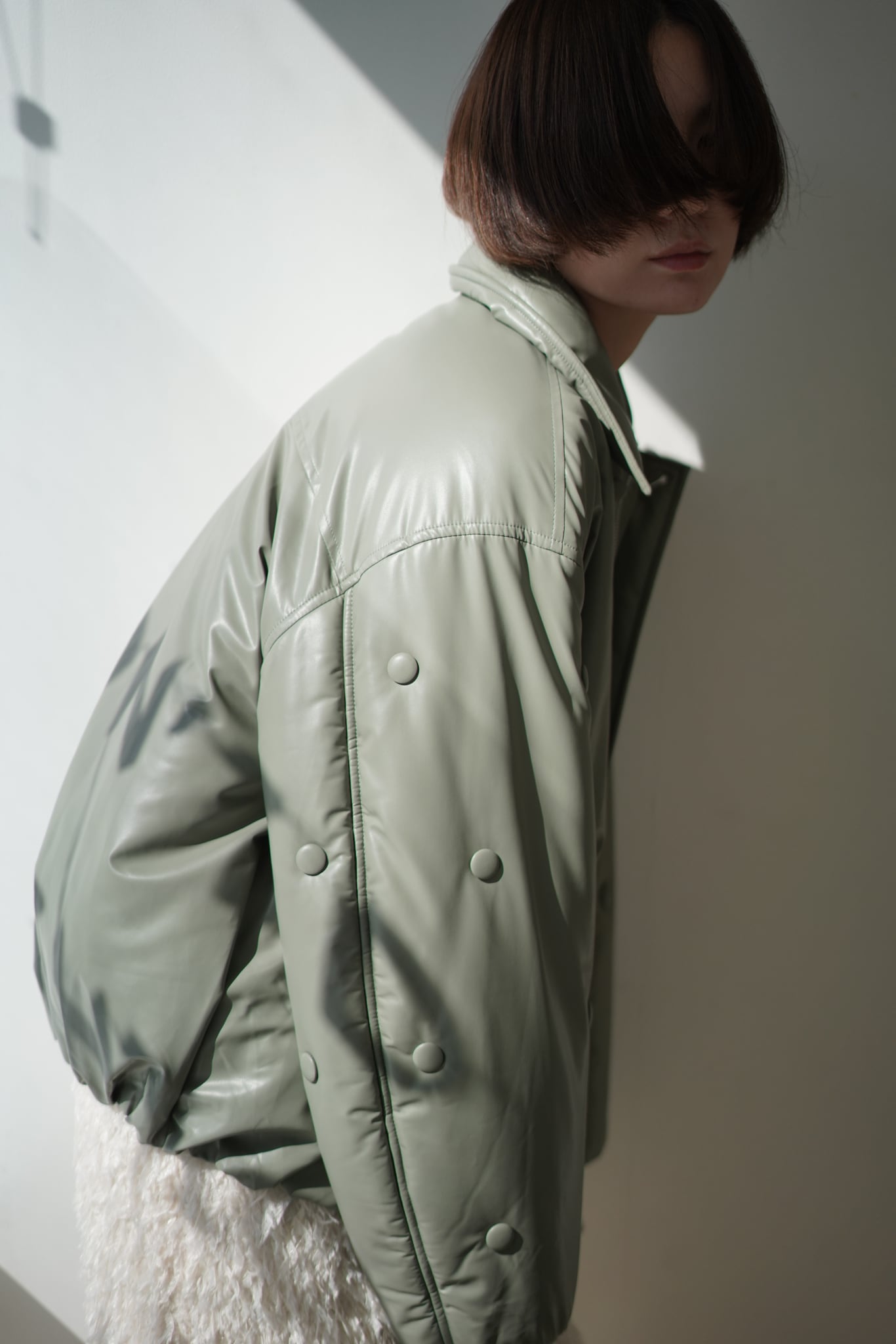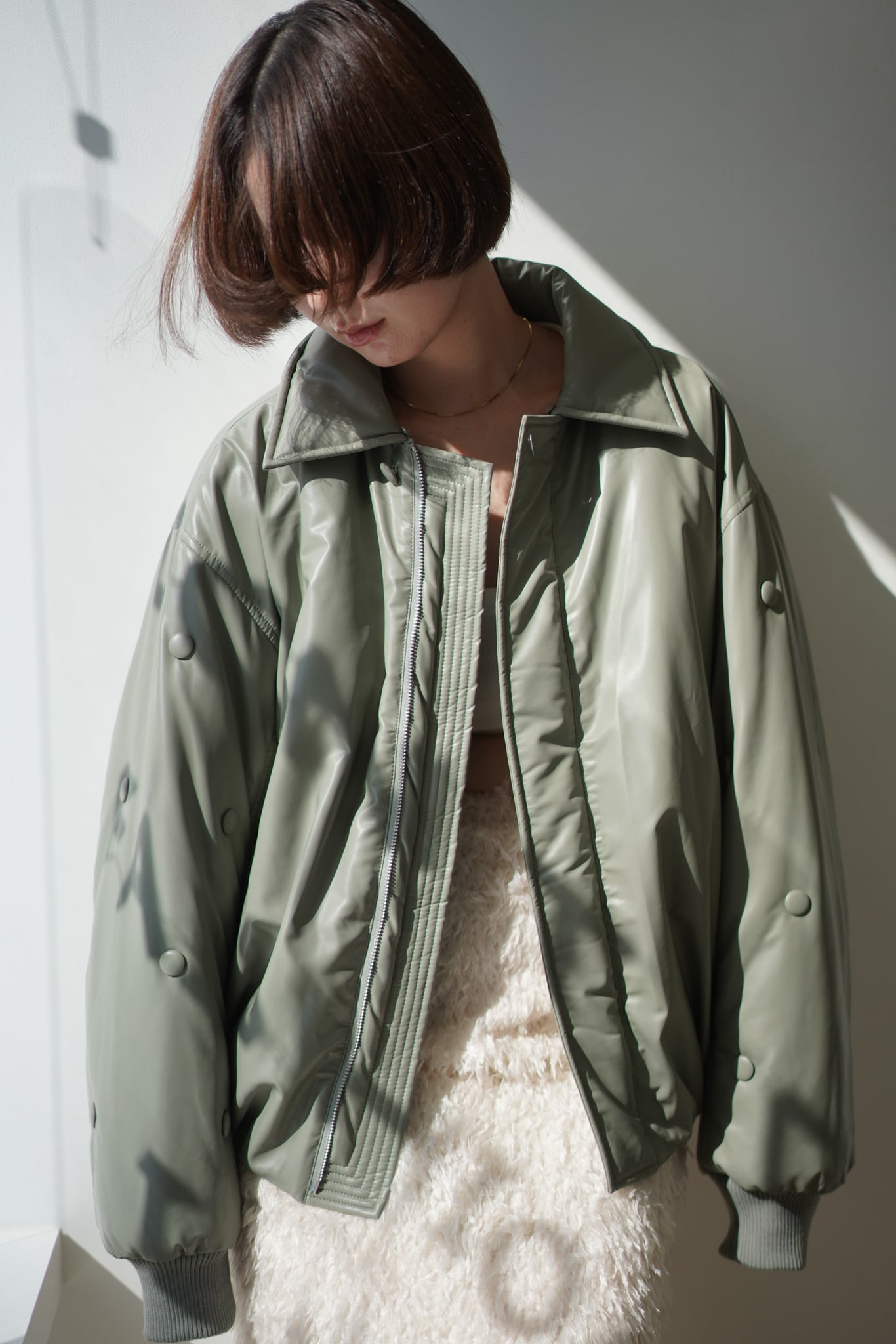 袖部分をボタンデザインあしらったフェイクレザーMA1ジャケット。
