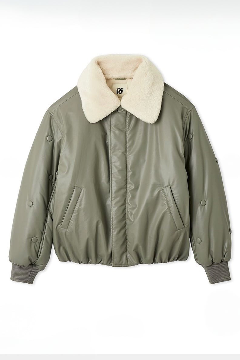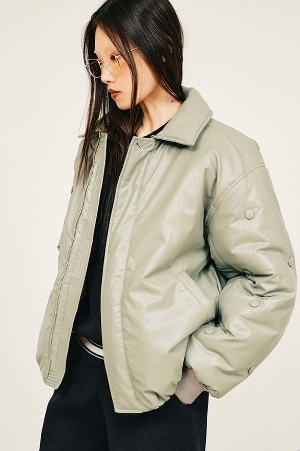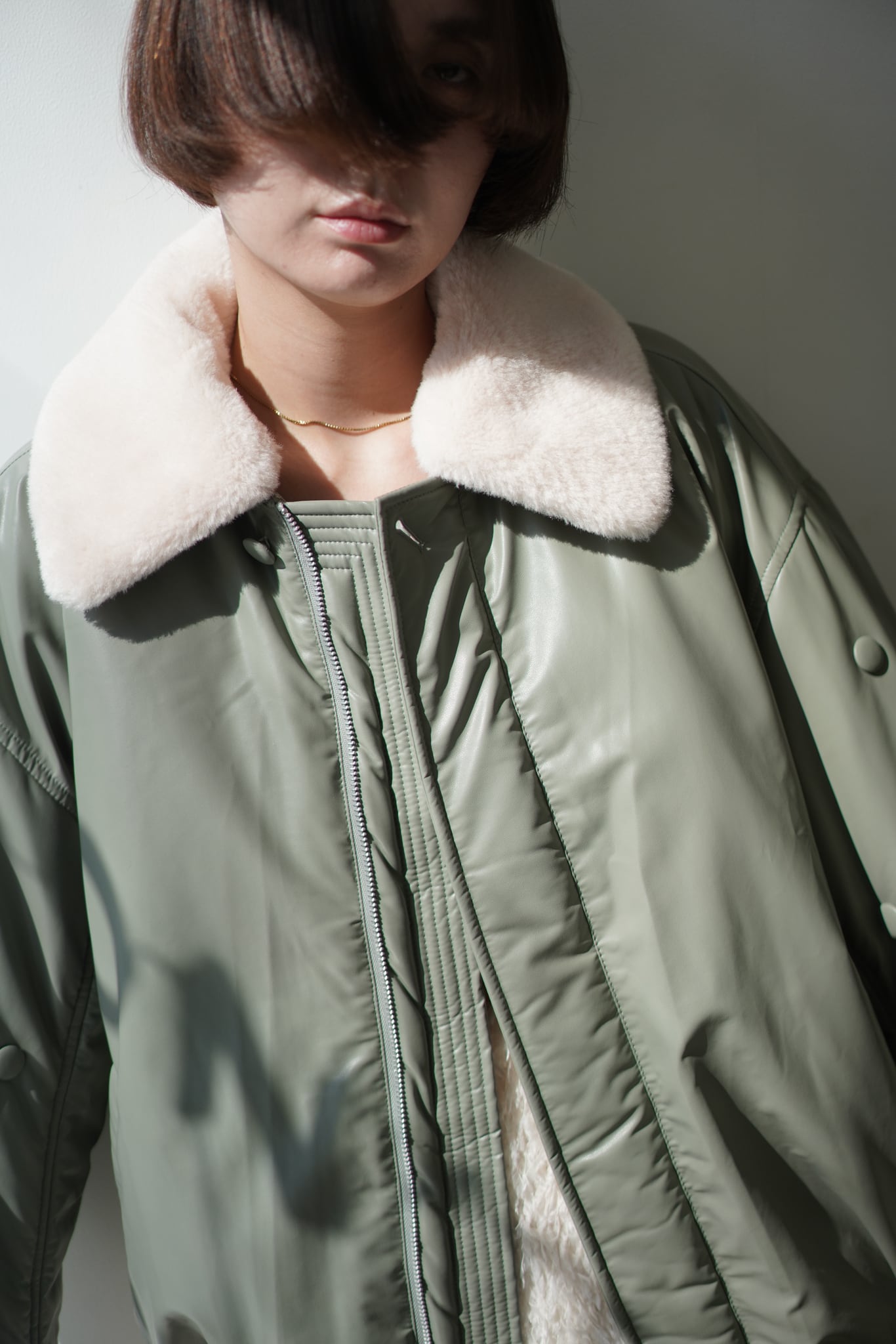 袖部分をボタンデザインあしらったフェイクレザーMA1ジャケット。