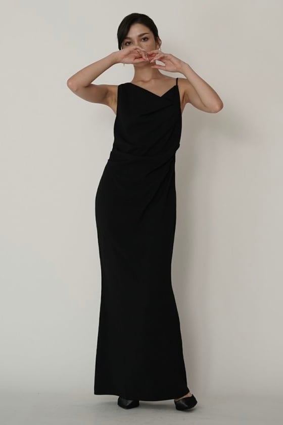 横堀様専用ページ KINO THE KEI asymmetry drape cami dress アシンメトリー ドレープ キャミ ワンピース Black