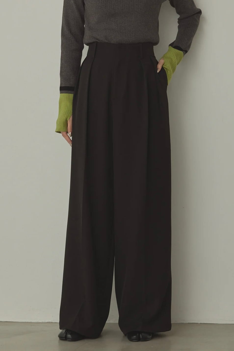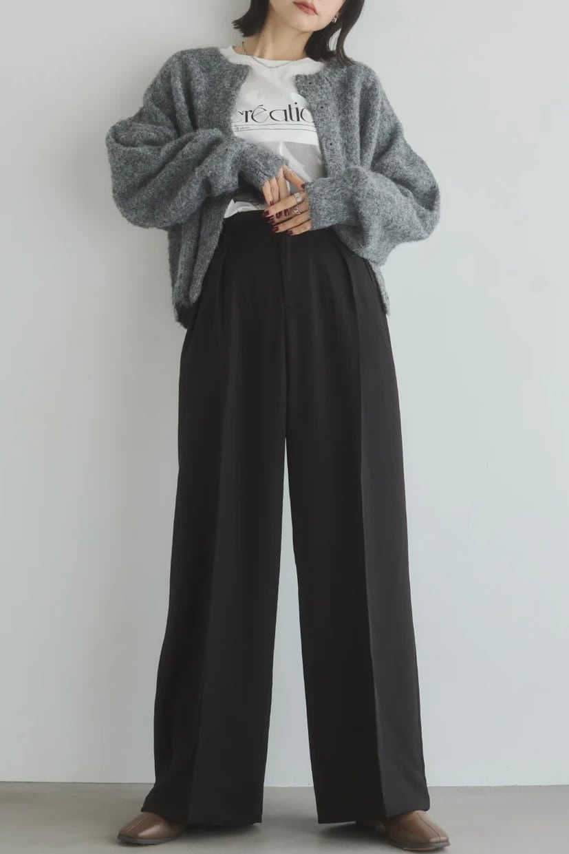 マニッシュなタックパンツは、デザイン性のあるトップスがおすすめです。