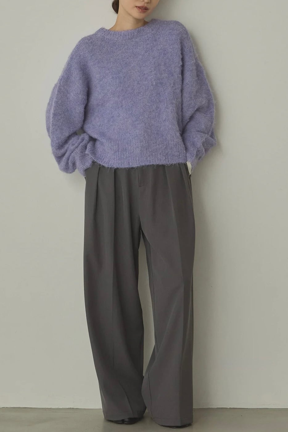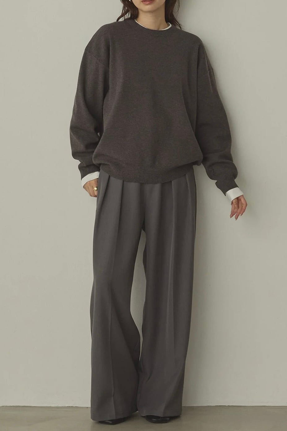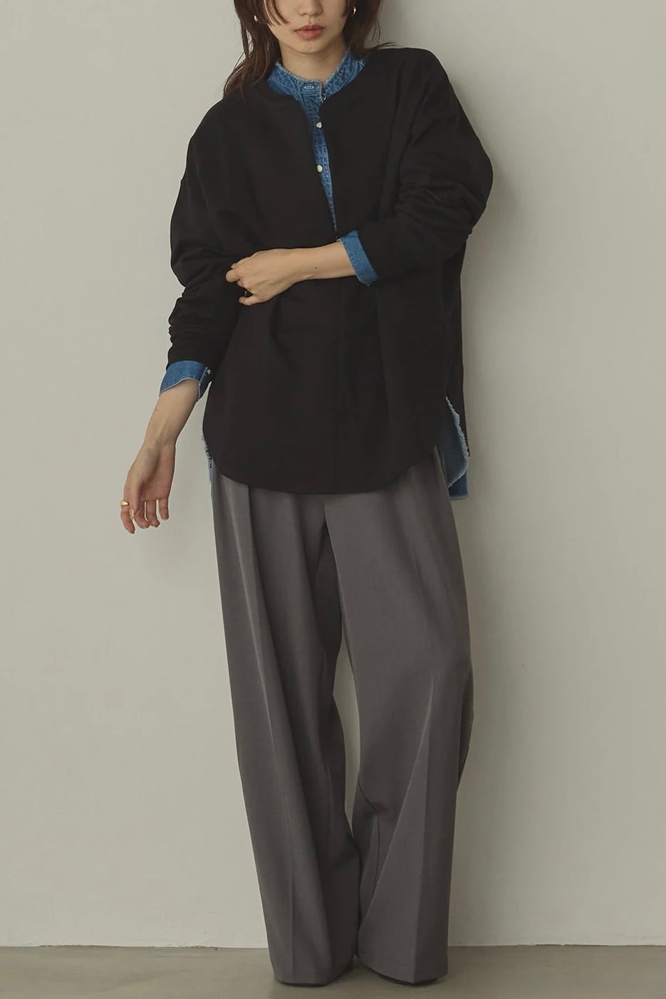 マニッシュなタックパンツは、デザイン性のあるトップスがおすすめです。