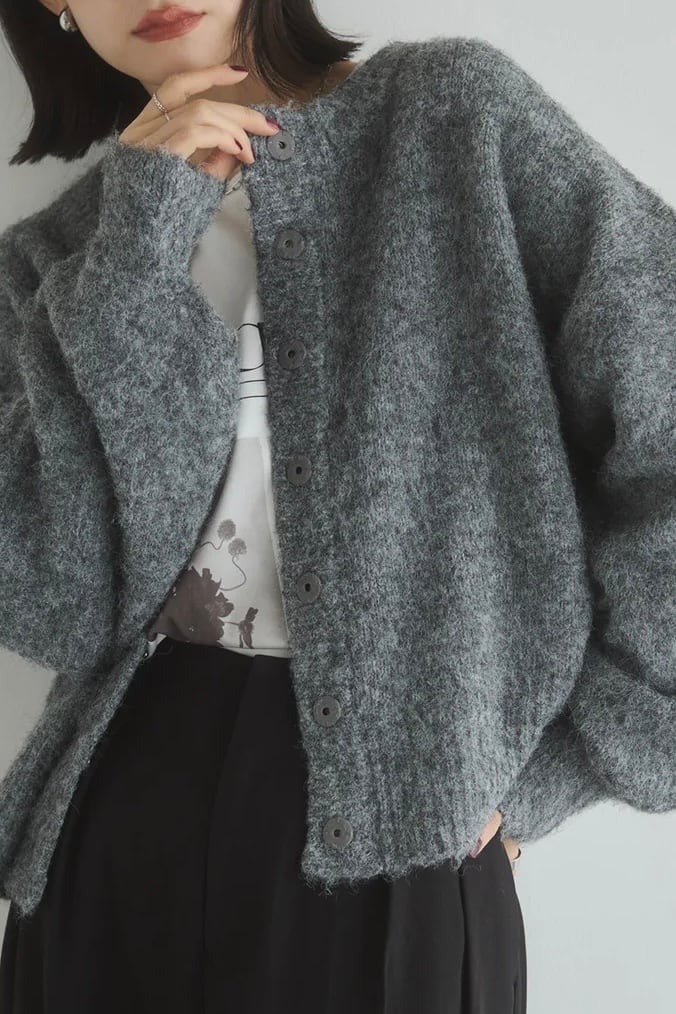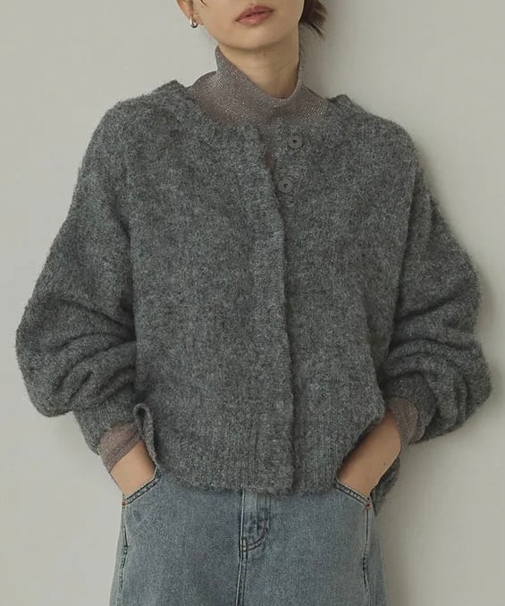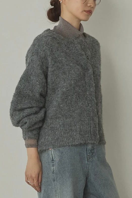Shaggy knit cardigan 前後2WAYシャギーニットカーディガン Gray