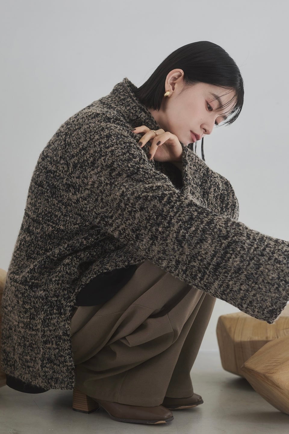 Boucle mix high neck knit ブークレミックス ハイネックニット Moca