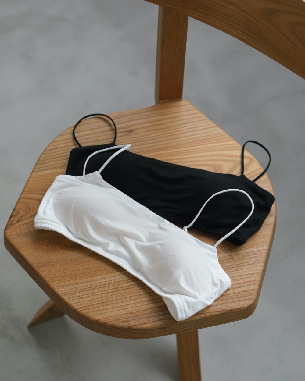細めのゴムを使用し、華奢に仕上げた肩紐は、見えてもこなれた印象で着ていただけます。