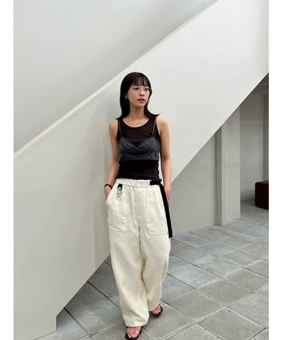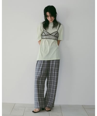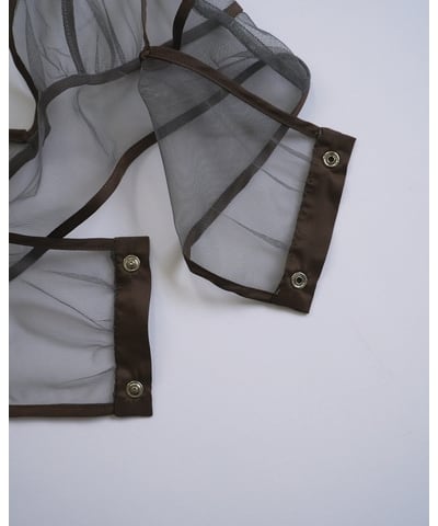 シアー生地と重なる曖昧な色の重なりがニュアンスある奥行きを生み、モードなレイヤードスタイルが完成します。