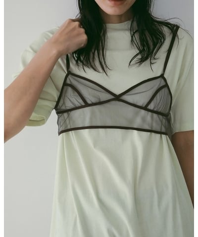 透け感のあるチュールを使用し、繊細に仕上げたブラトップ。