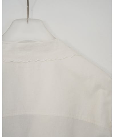 スカラップ刺繍で仕上げた襟と裾もポイント。インド製ならではの繊細なディテールが、袖を通すだけで気分を高めてくれる一枚。