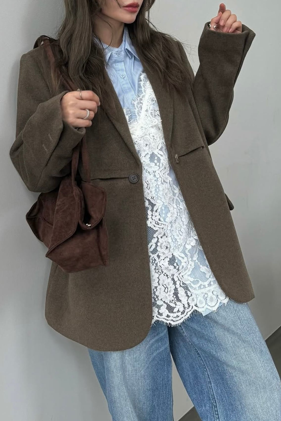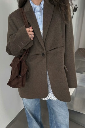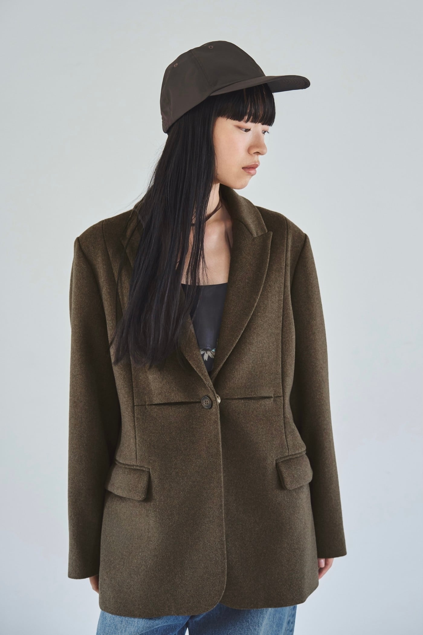WILLFULLY peaked lapel waist tuck oversize JK スピークドラペルウエストタックオーバージャケット Brown