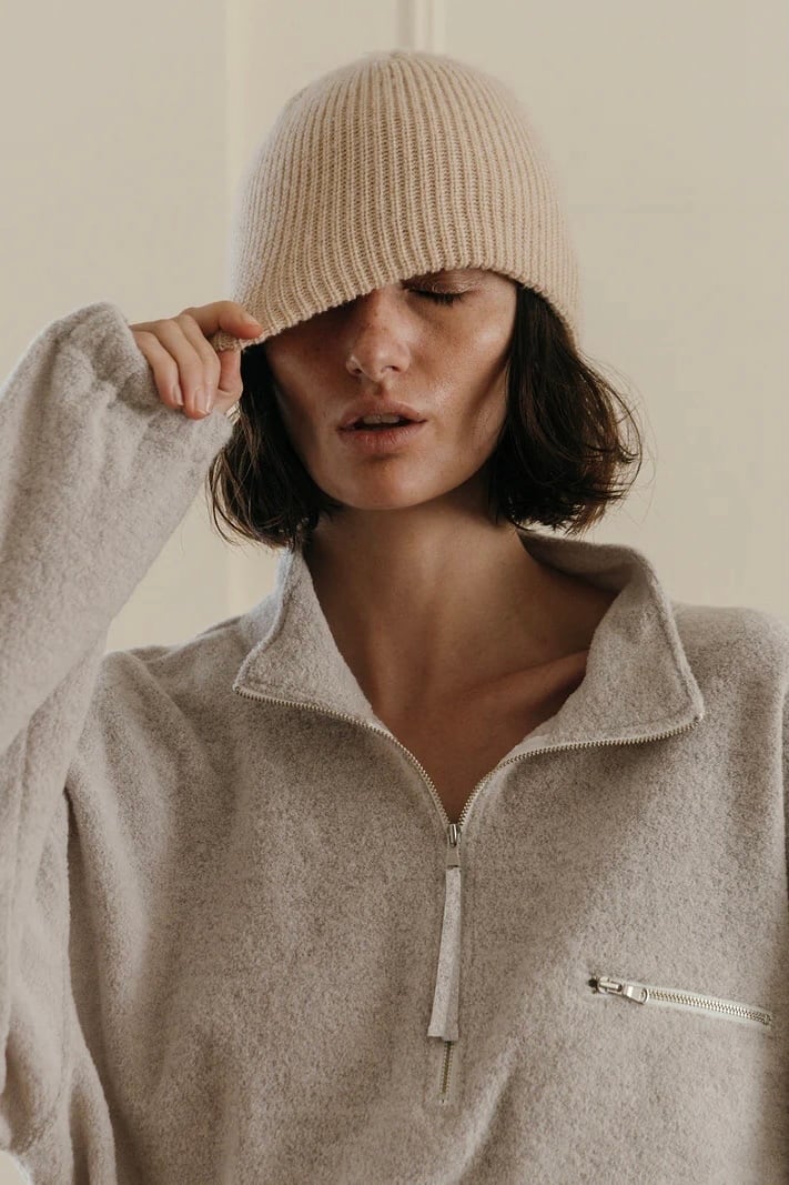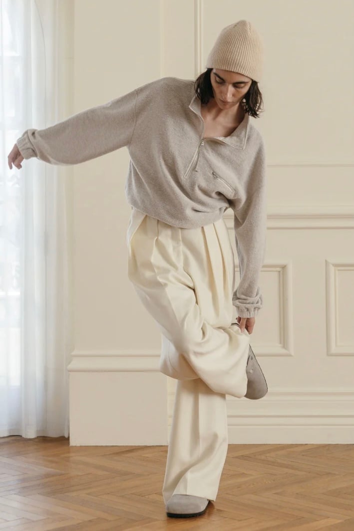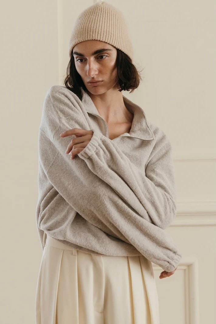 CREDONA WOOL PILE HALF ZIP TOP ウールパイルハーフジップトップ Ivory