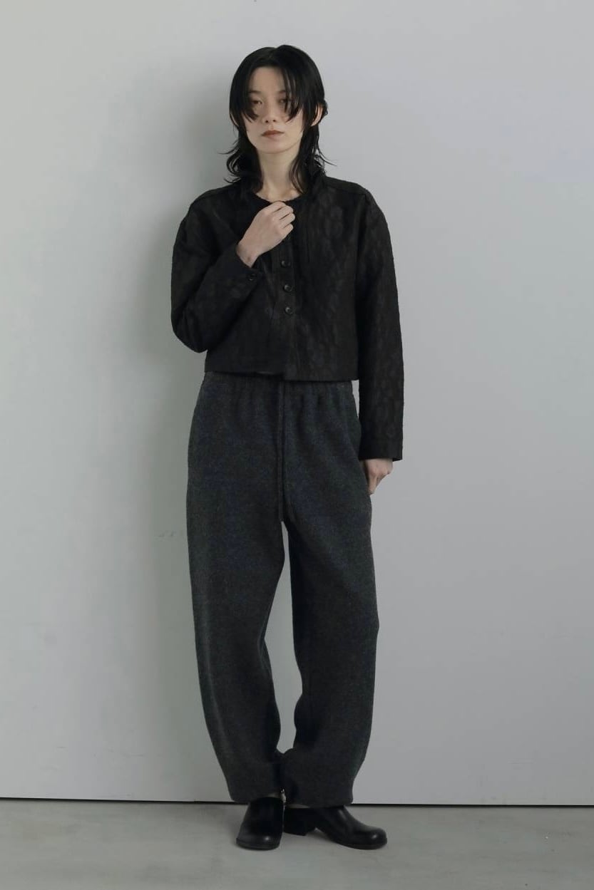 ウール100%の表情ある素材を使用したドロストパンツ。 ウエストはゴム仕様で、内側と共紐で調節可能です。裾のゴムを絞ってシルエットを調節でき、身長や靴の種類に合わせて、バランスの取れたスタイリングが可能です。 カジュアルな印象のドロストデザインも、ウール素材で仕上げることで大人っぽい着こなしに決まる一本。