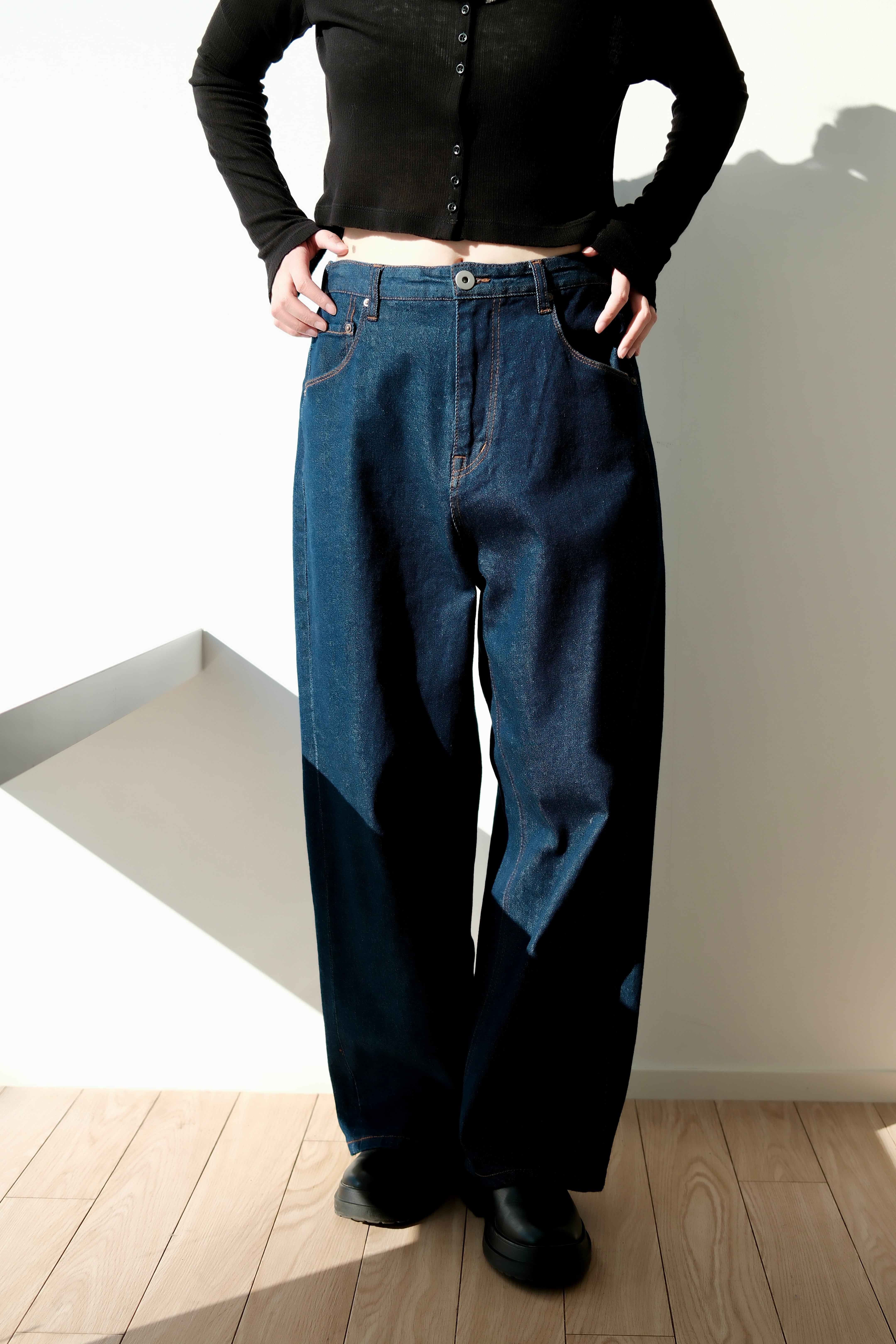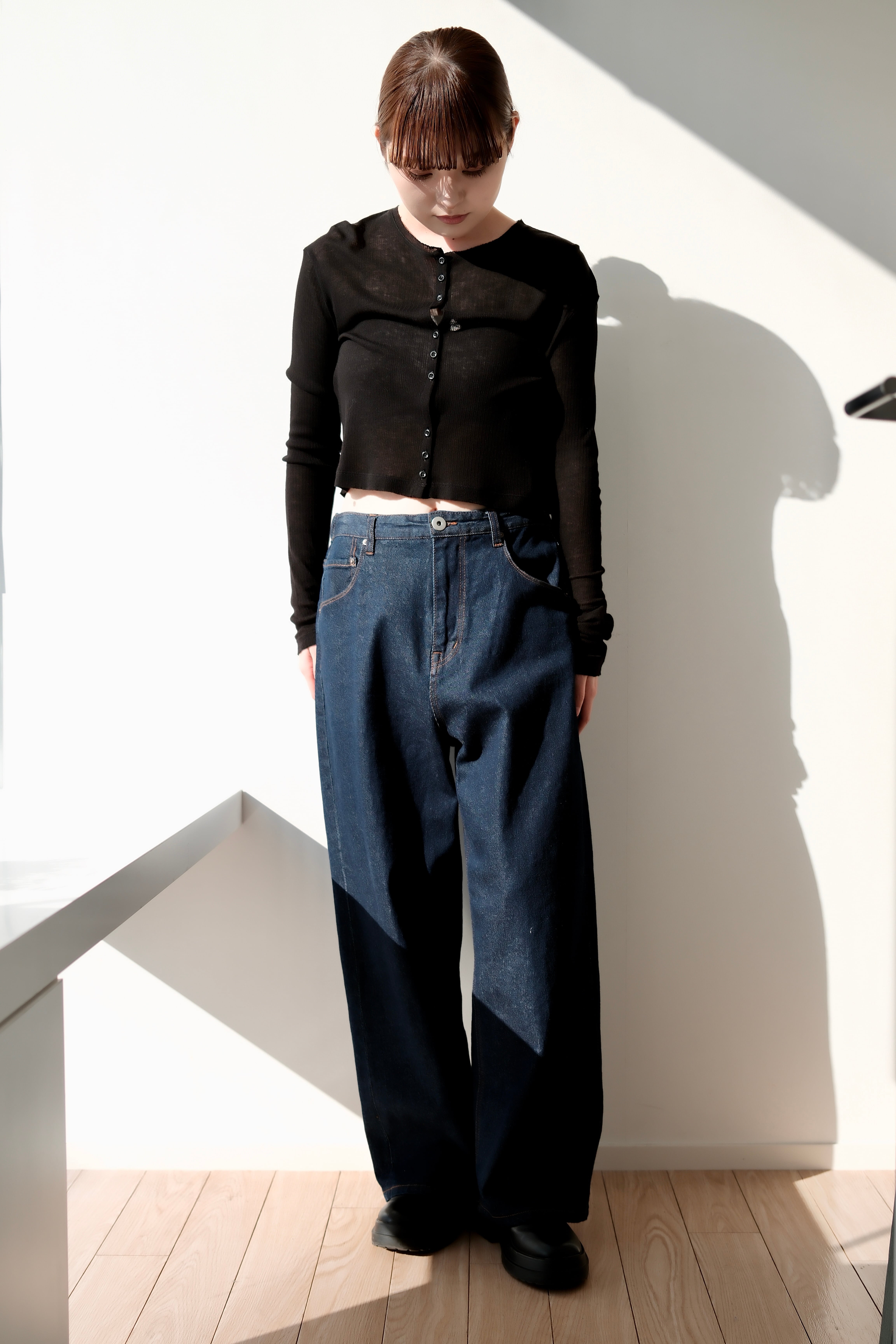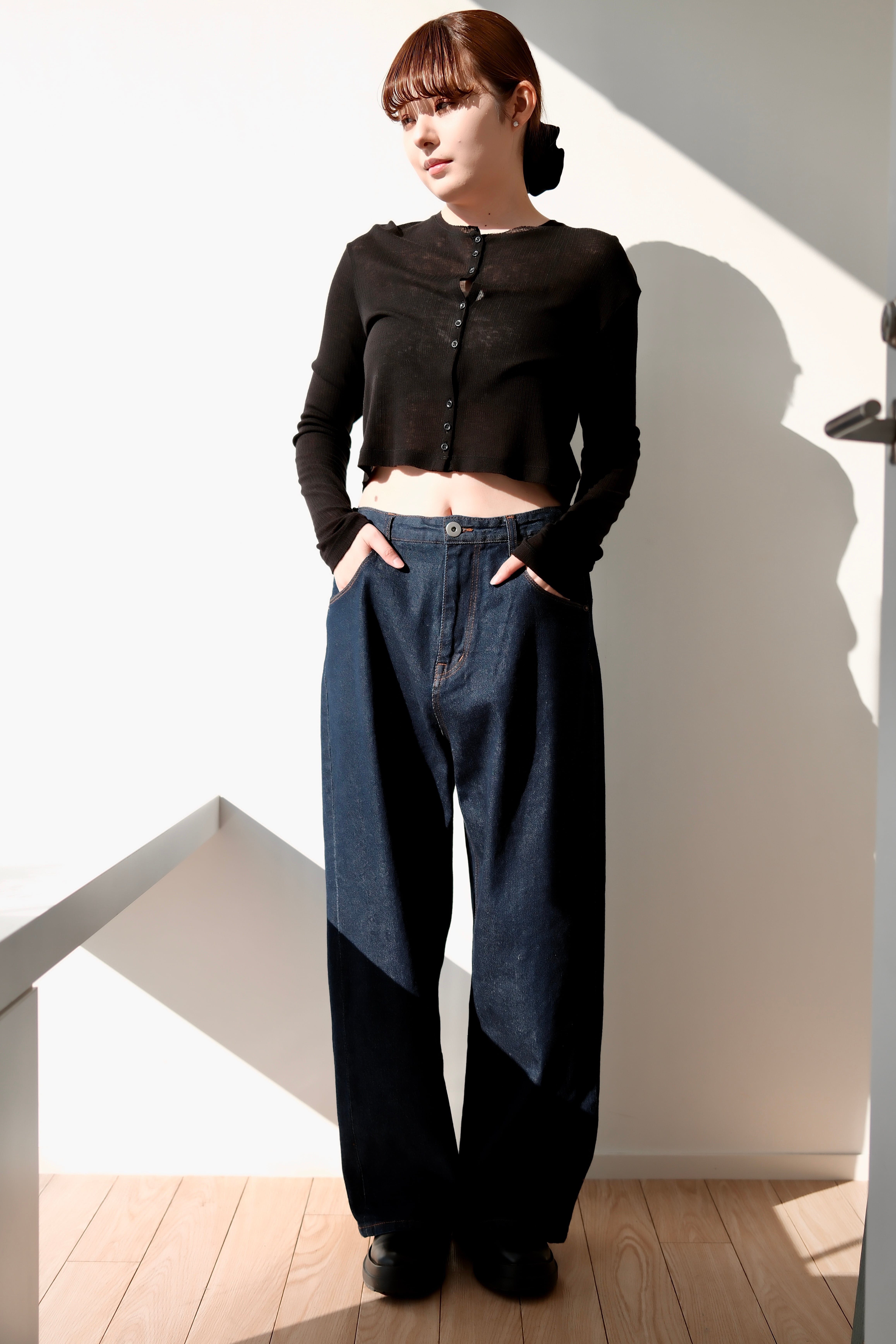 ゆったりとしたサイズ感ながらも、前側に寄ったサイドの切り替えが、細くきれいなシルエットに見せてくれます。