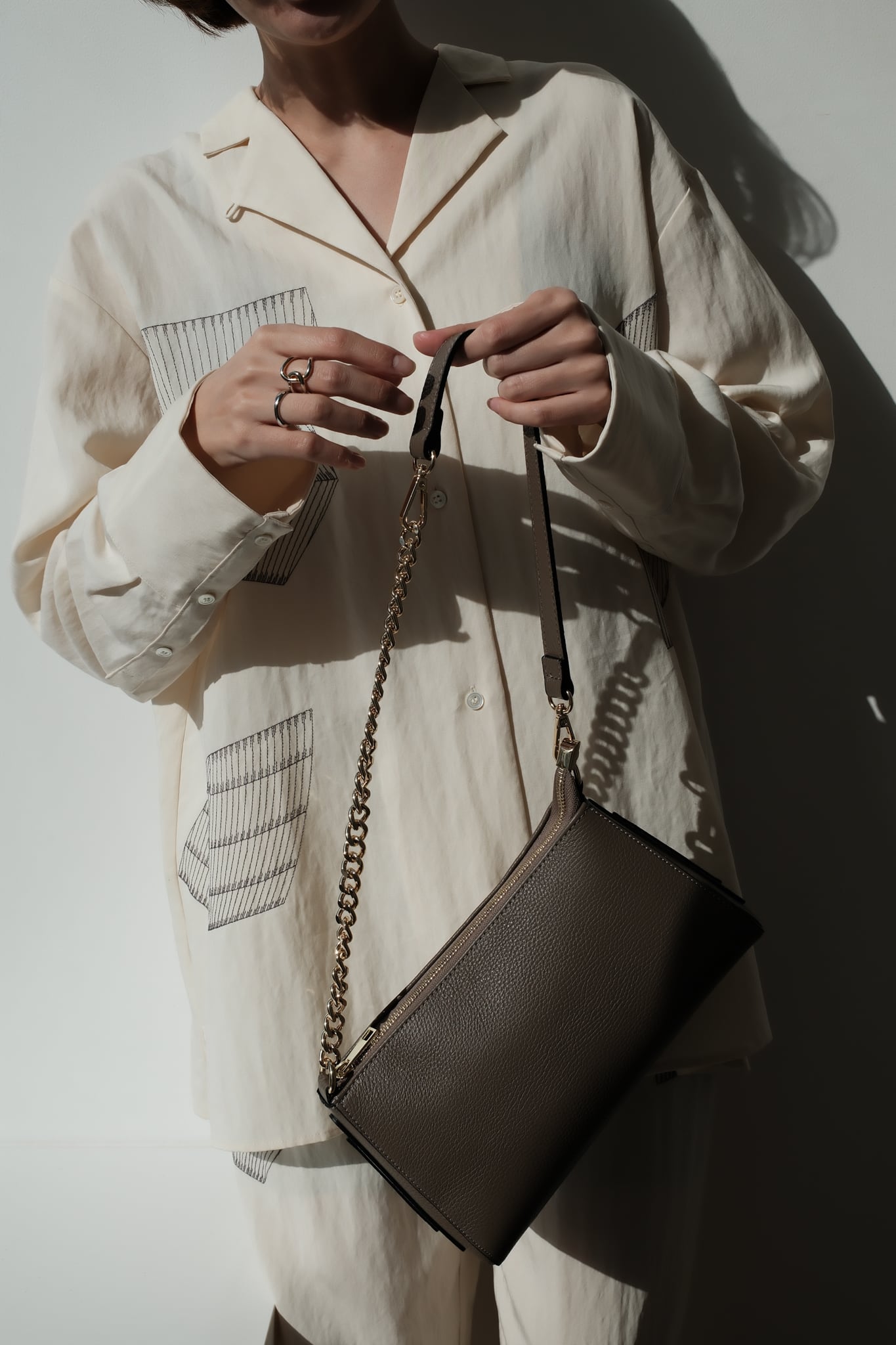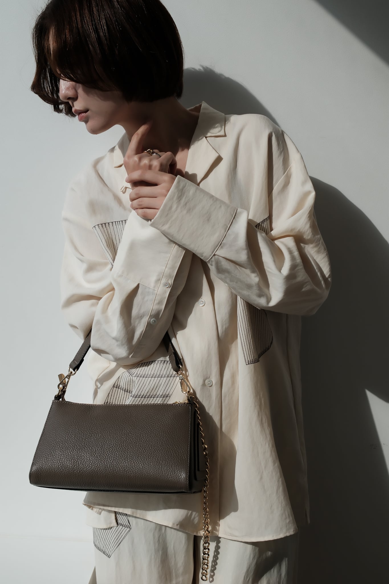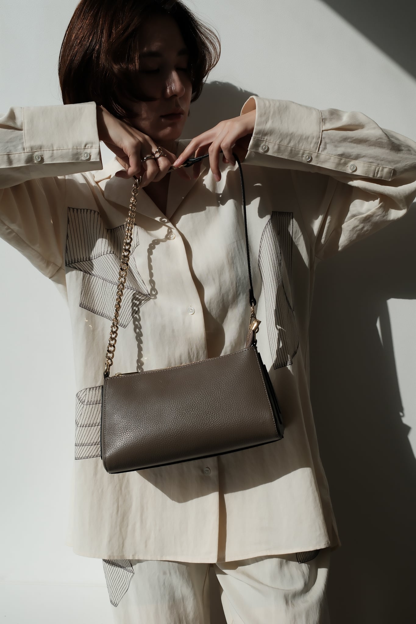 ロングとショートのストラップ付で、チェーンにショートストラップをつなげても使用でき、3WAYのデザインを楽しんでいただけます。
