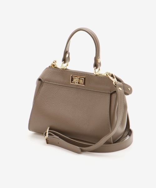 かっちりとしたフォルムとゴールドの金具が上品な大人っぽさのあるハンドバッグ。