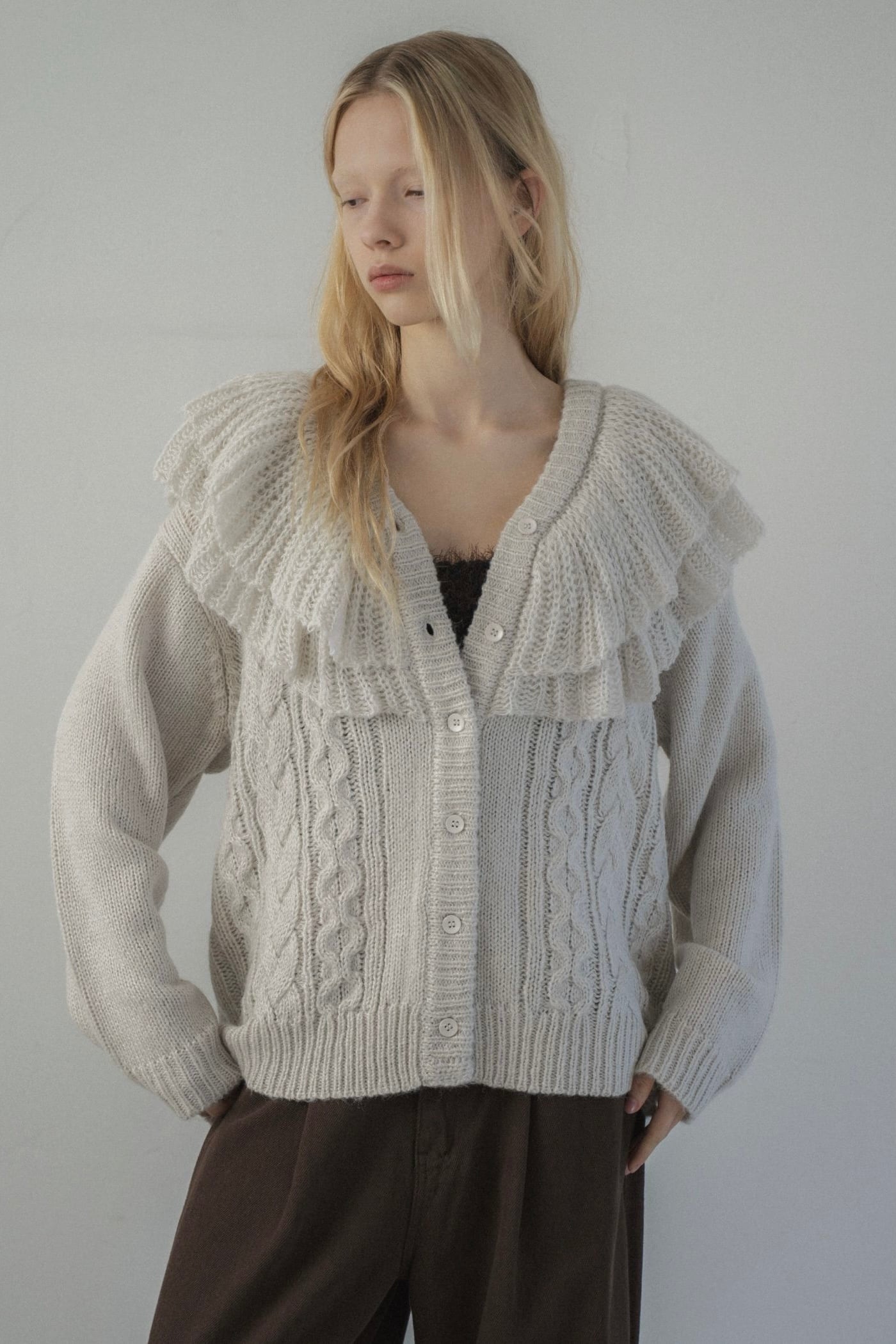 WILLFULLY shoulder frill cable knit cardigan ショルダーフリルケーブルニットカーディガン stone