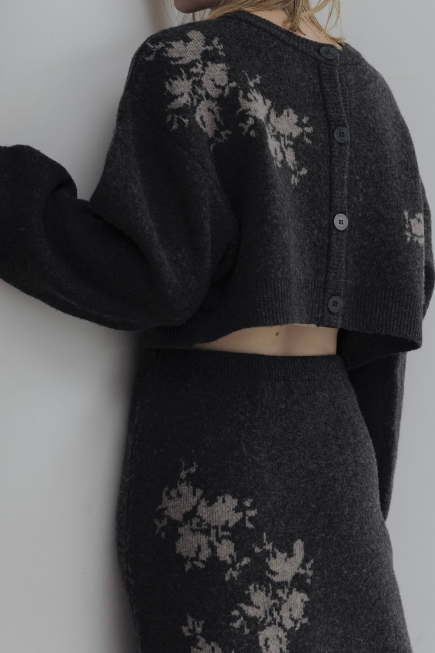 WILLFULLY flower jacquard pencil knit SK フラワージャガードペンシルニットスカート Charcoal