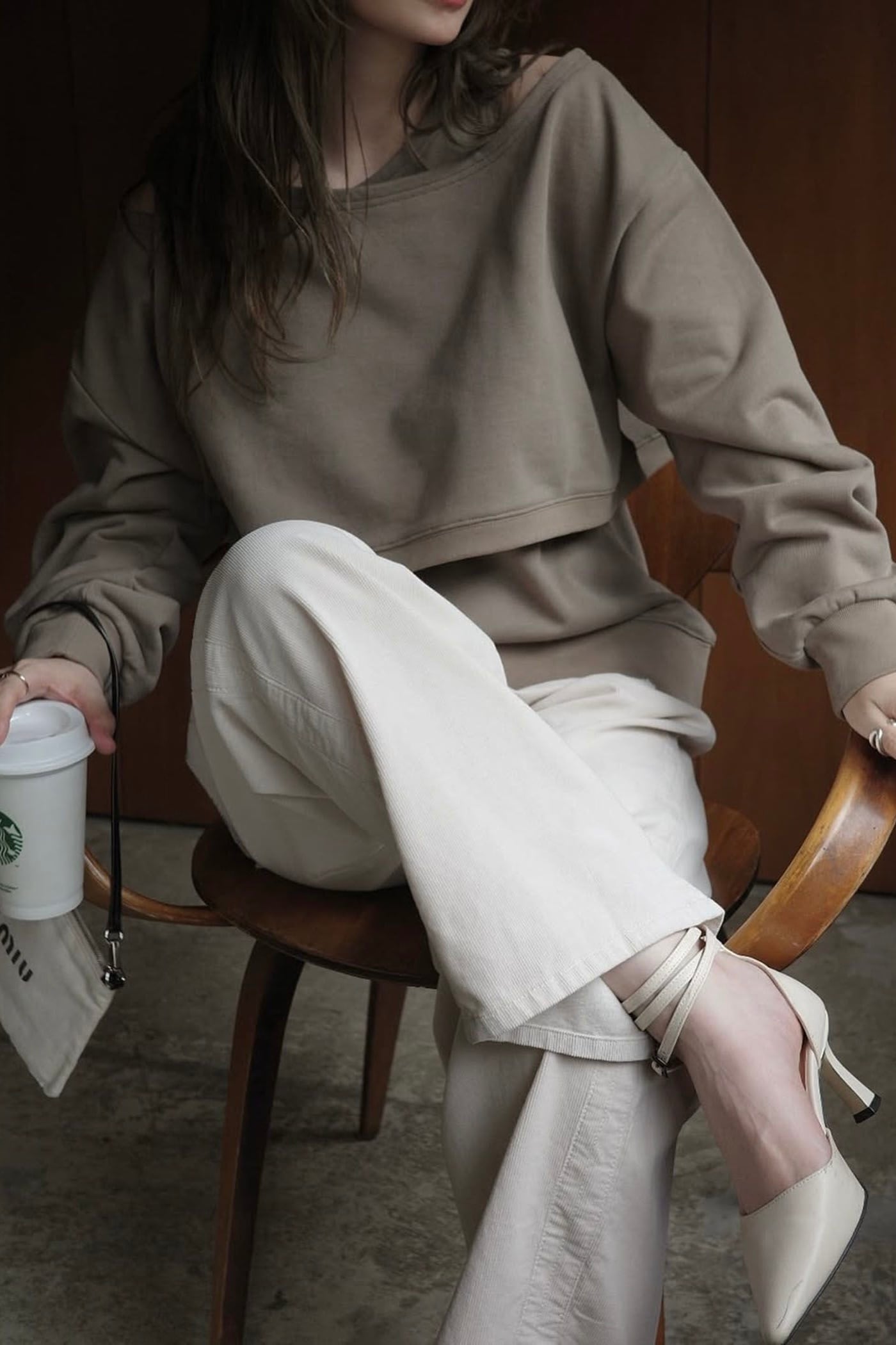 WILLFULLY asymmetry 2 piece layered sweat アシンメトリー2ピースレイヤードスエット caffe mocha
